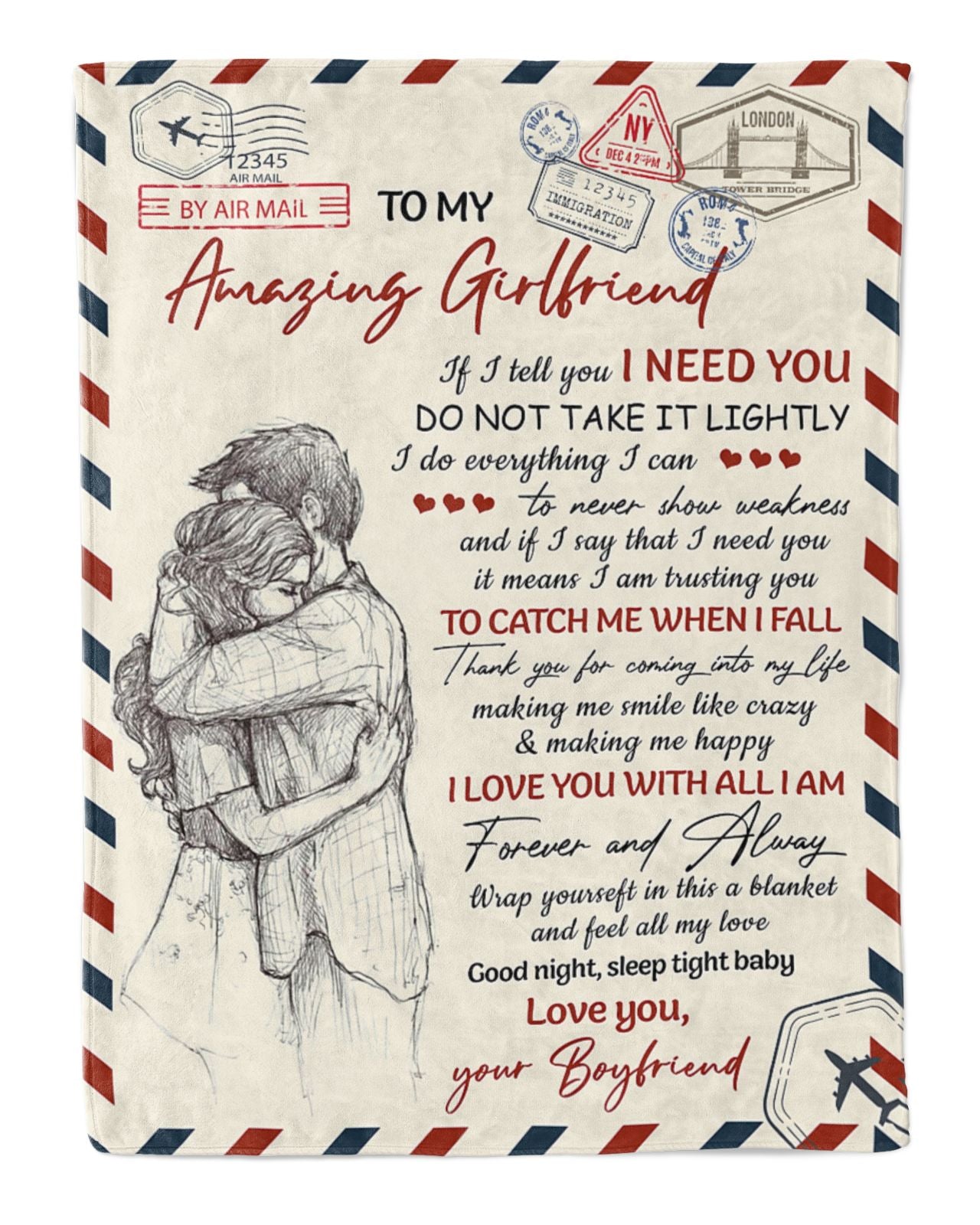 So whether you're looking to show off your own name or create a personalized gift for someone special, LateAndLow Store has got you covered. Start designing your own custom To My Amazing Girlfriend Couple Love Letter Blanket From Boyfriend, To My Amazing Girlfriend If I Tell You I Need You Letter Blanket For Girlfriend print-on-demand product today, and let us bring your vision to life!