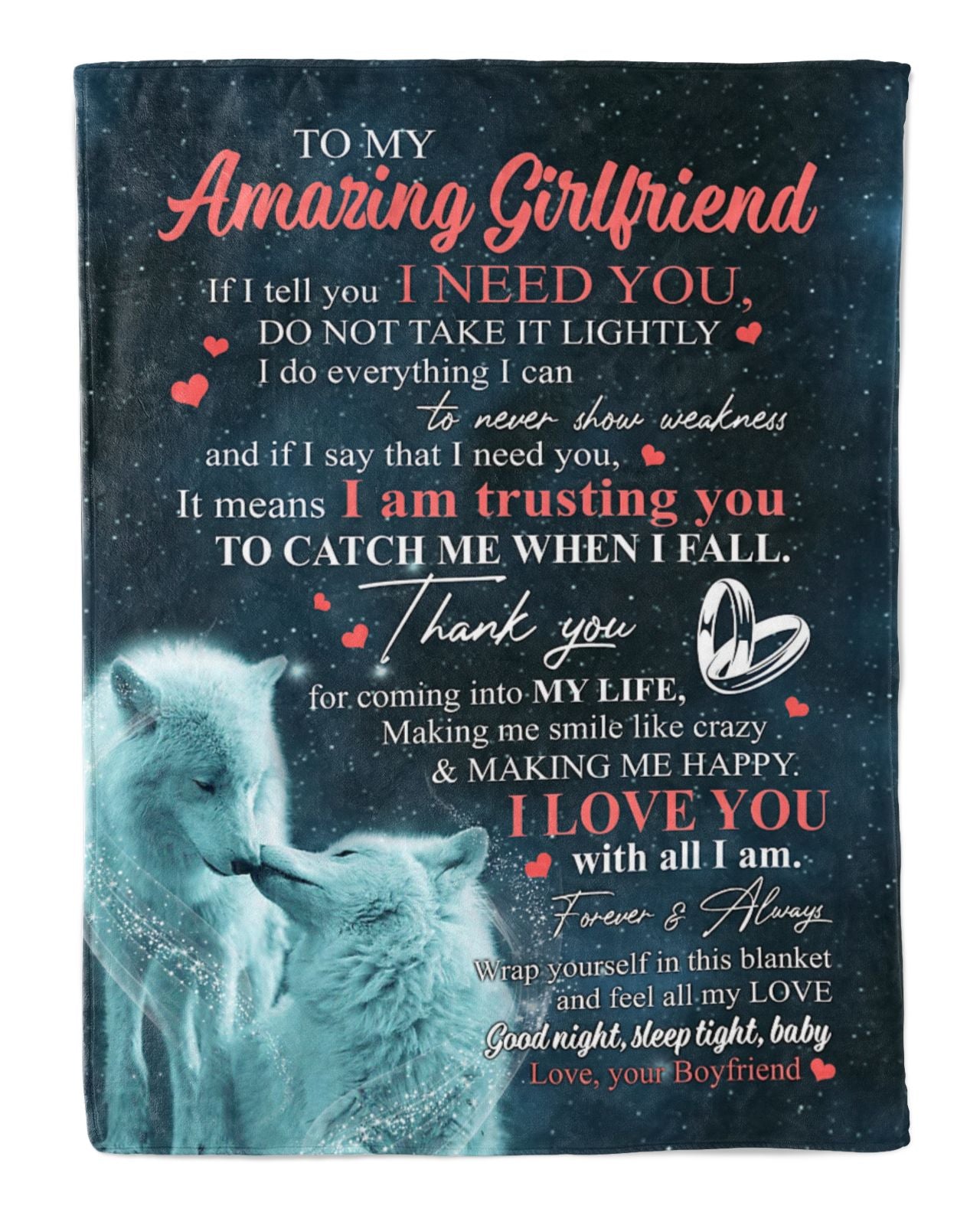 At Cotenis Store, we offer a fantastic range of print-on-demand products that can be personalized with your name. Our To My Amazing Girlfriend Couple White Wolf Blanket From Boyfriend, To My Amazing Girlfriend If I Tell You I Need You White Wolf Blanket For Girlfriend print-on-demand products are the perfect way to add a personal touch to your wardrobe or to create a unique and thoughtful gift for someone special.