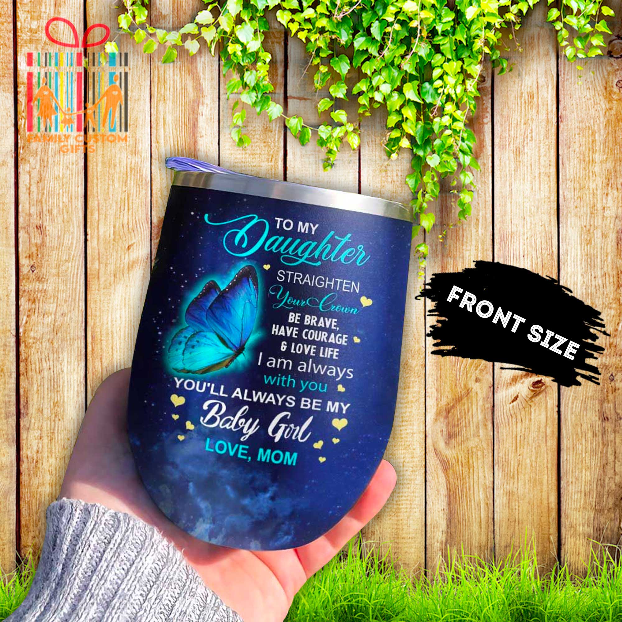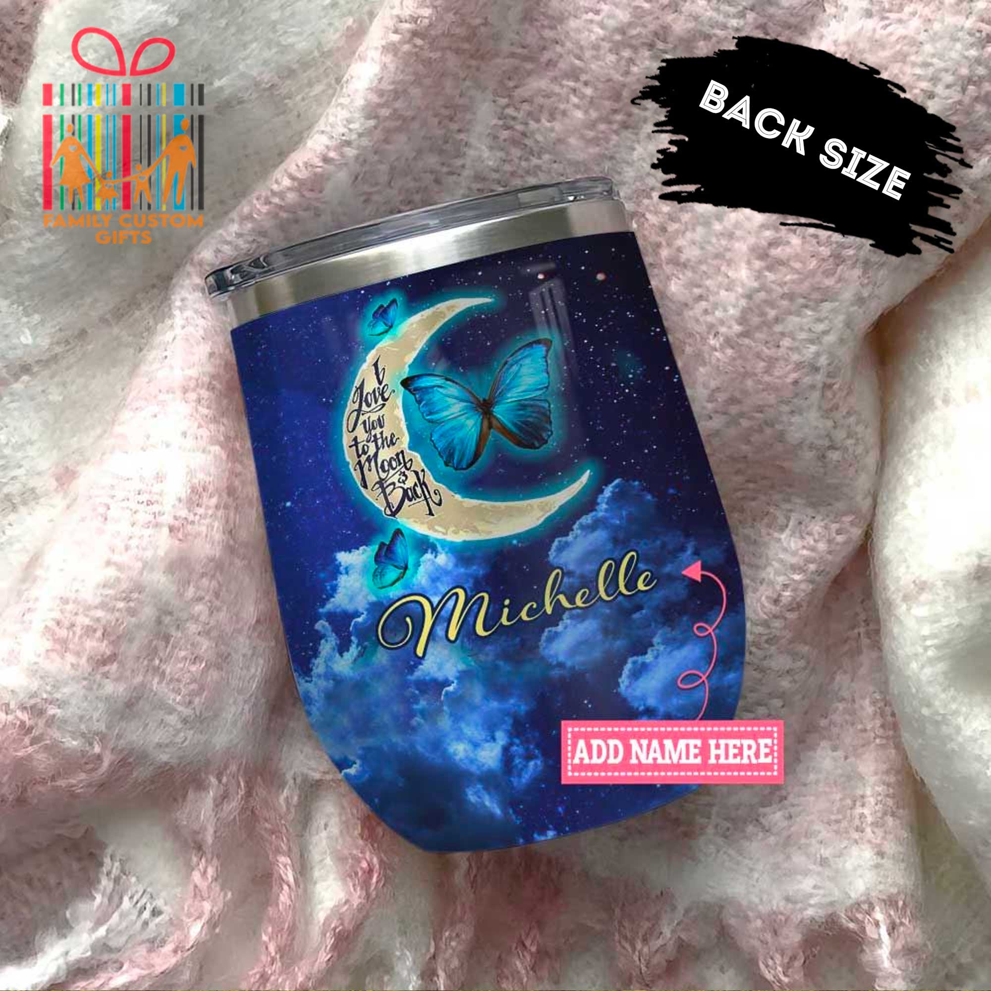 To My Daughter Butterfly Love You To The Moon Custom Tumbler Cups Personalized Stainless Steel Wine Glasses
