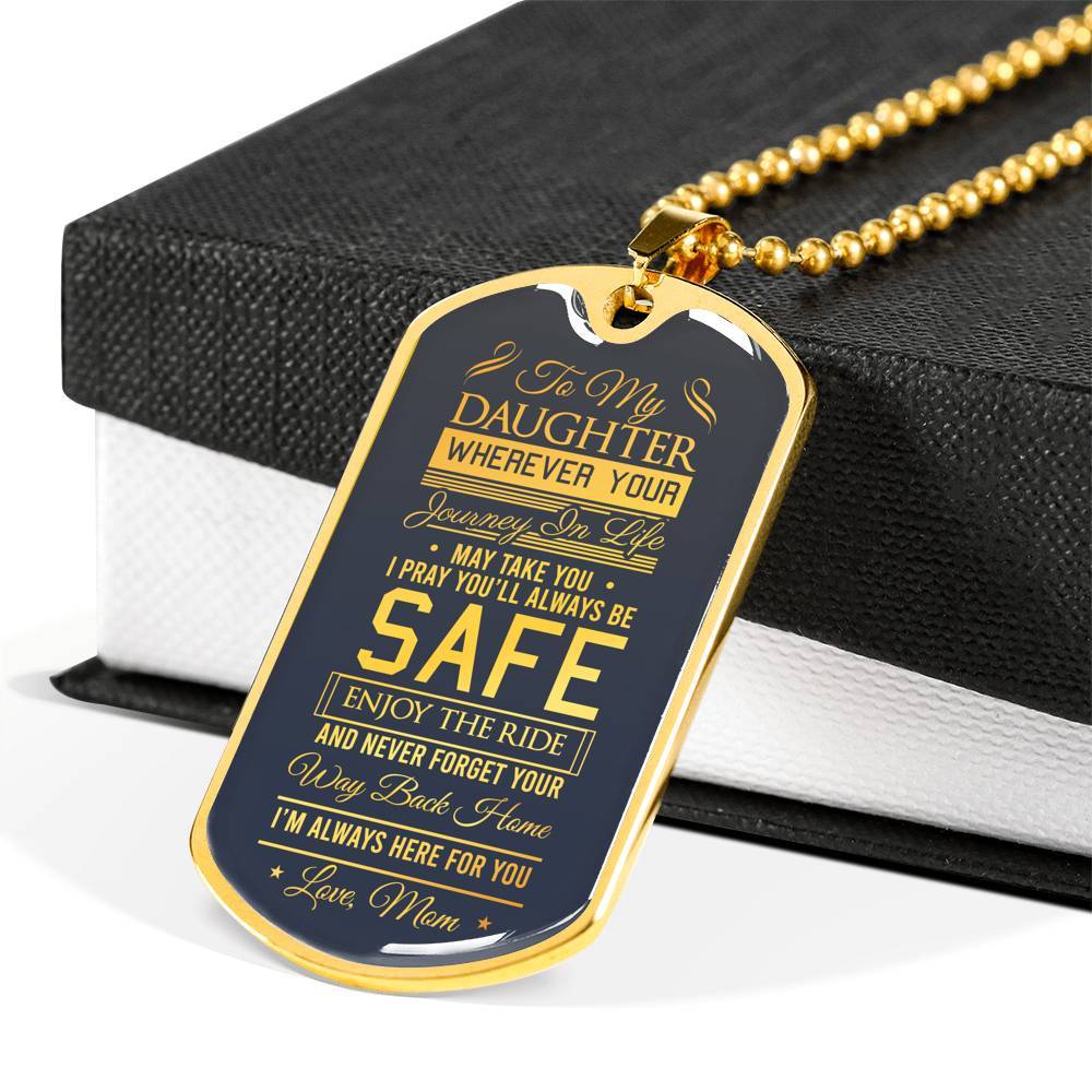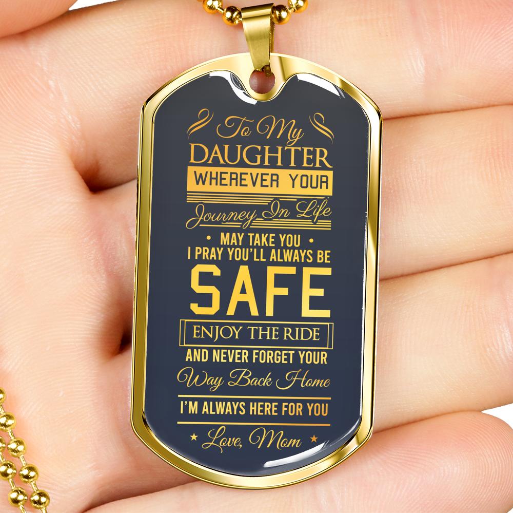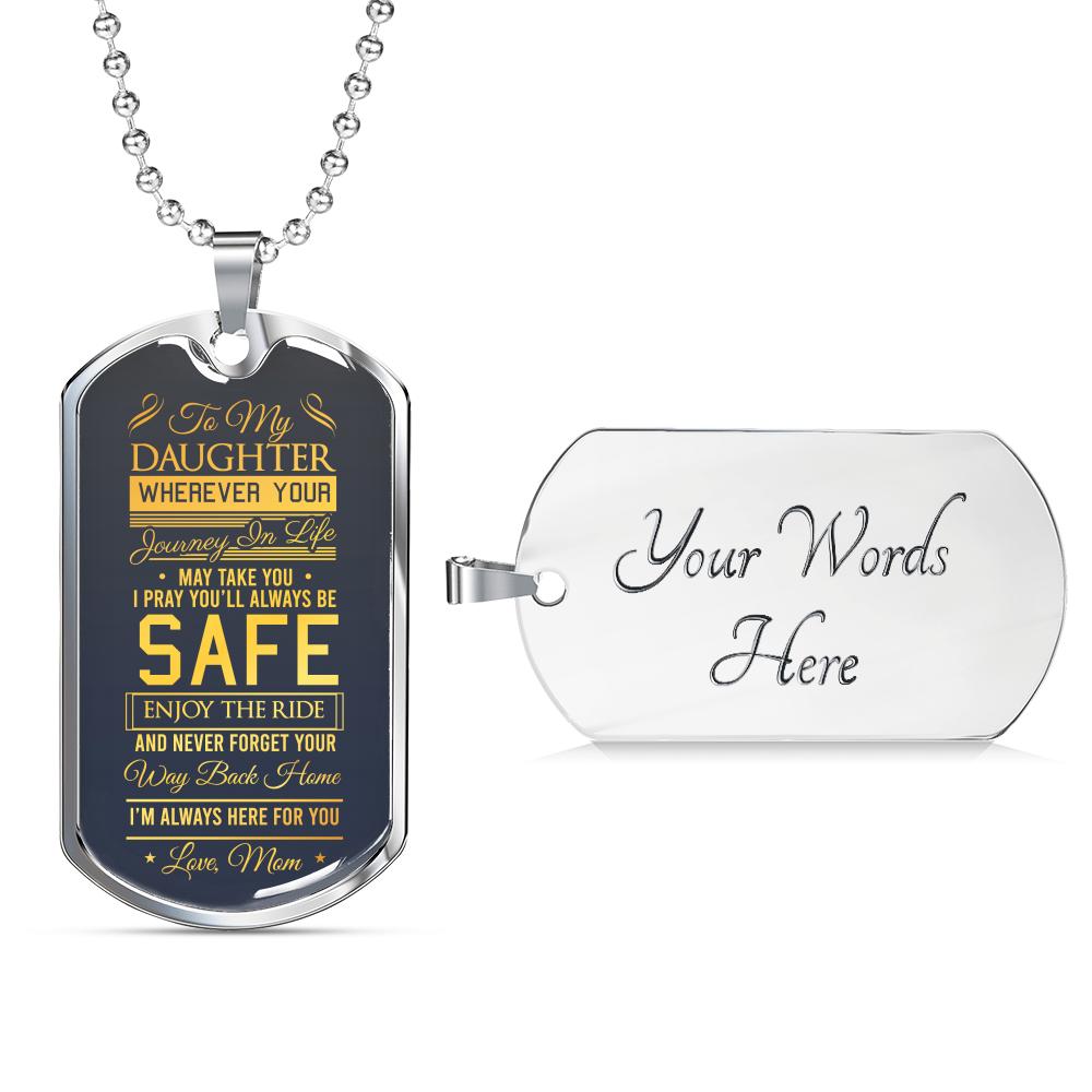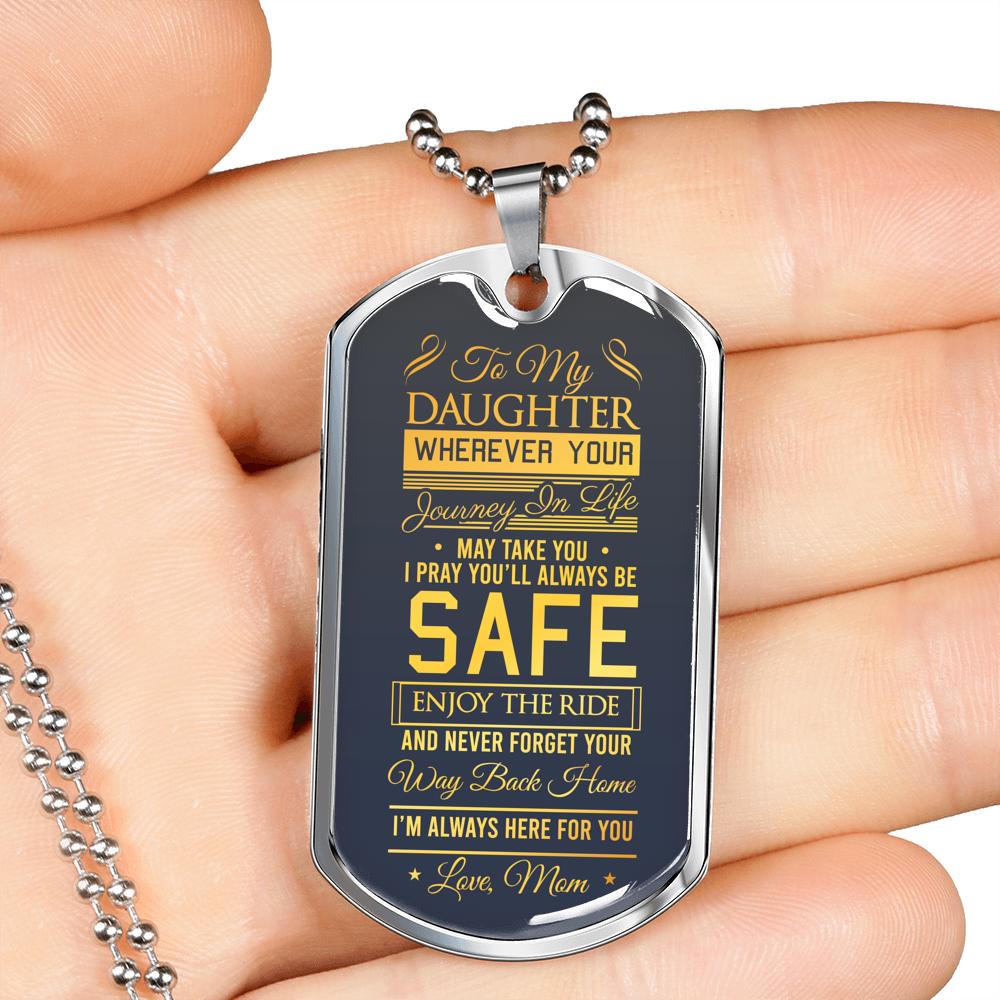 To My Daughter Wherever Your Journey In Life May Take You Love Mom Dog Tag Necklace