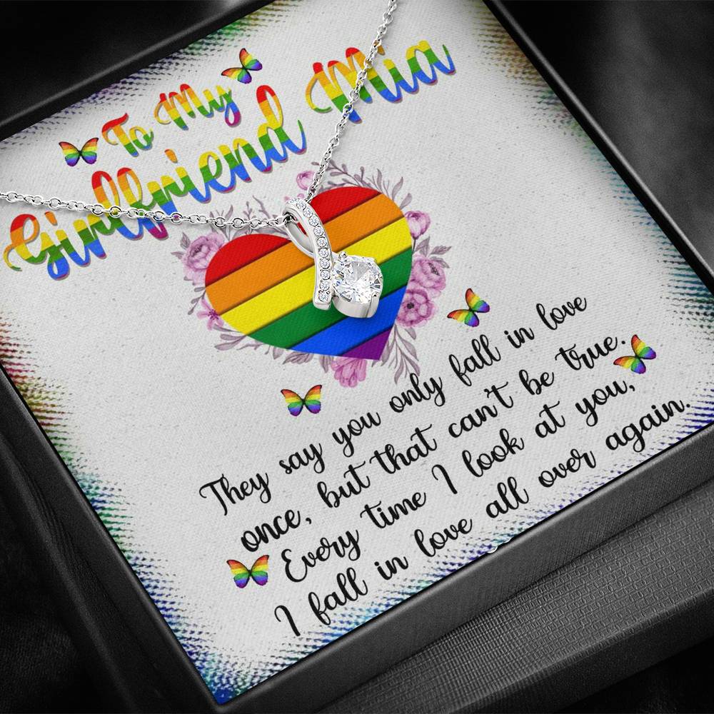 To My Girlfriend, Every Time I Look At You, I Fall In Love All Over Again, Gold/Silver Necklace With Message Card, Couple Gifts, Jewelry For Her, Alluring Necklace
