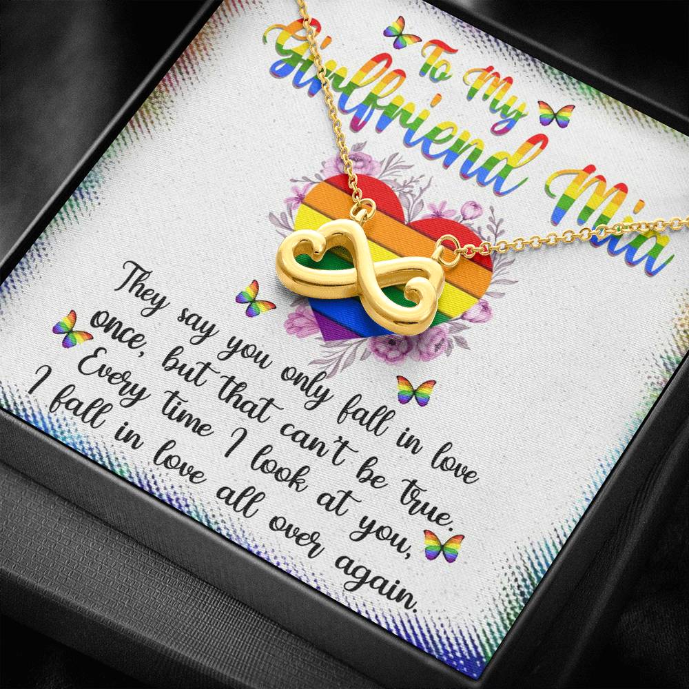 To My Girlfriend, Every Time I Look At You, I Fall In Love All Over Again, Gold/Silver Necklace With Message Card, Jewelry For Her, Infinity Hearts Necklace, Couple Gifts