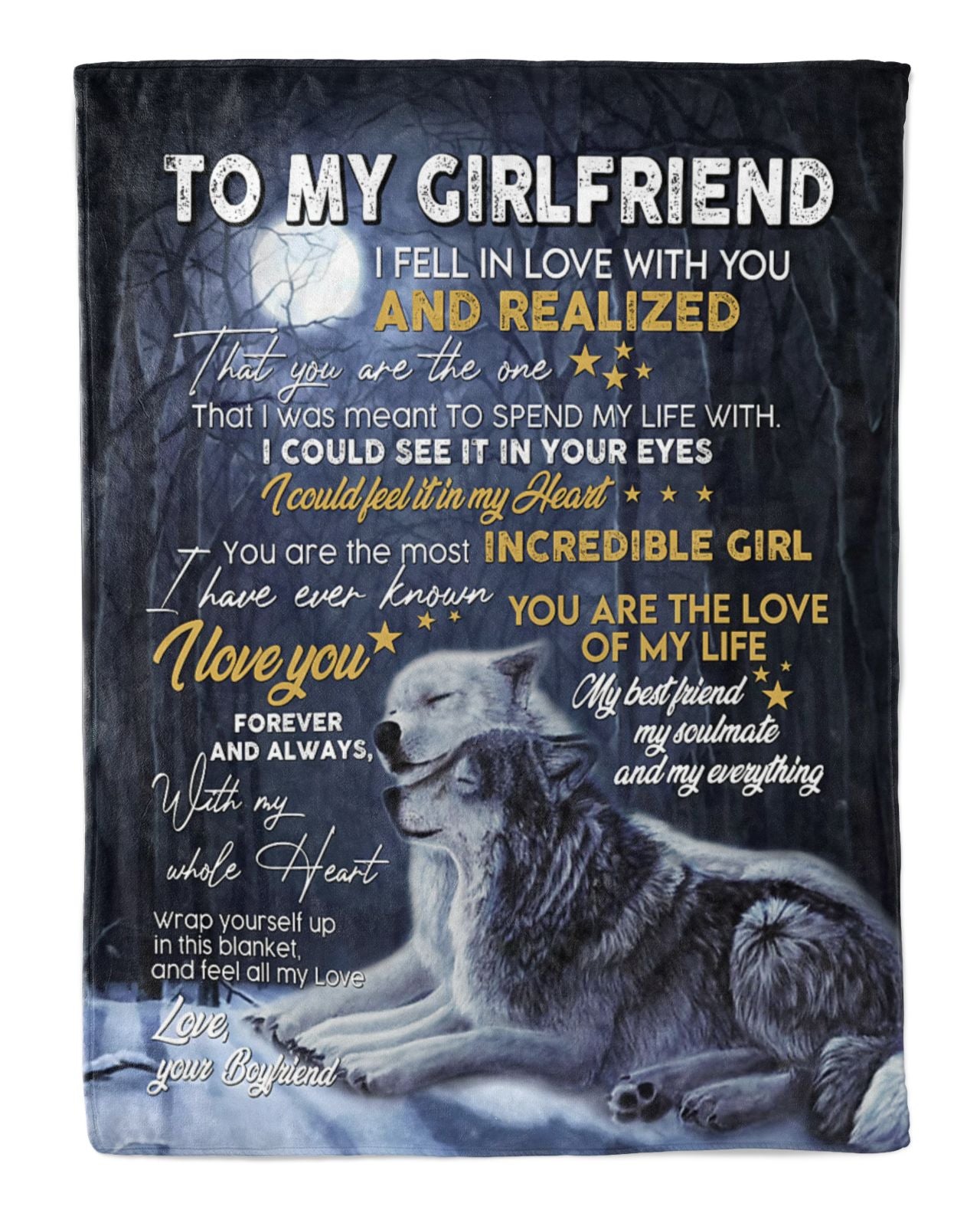 To My Girlfriend Night Wolf Couple Blanket From Boyfriend, To My Girlfriend I Fell In Love With You Wolf Couple Blanket Gifts For Girlfriend