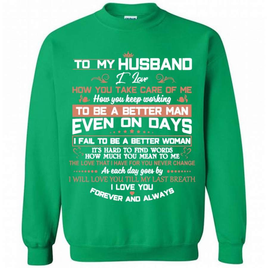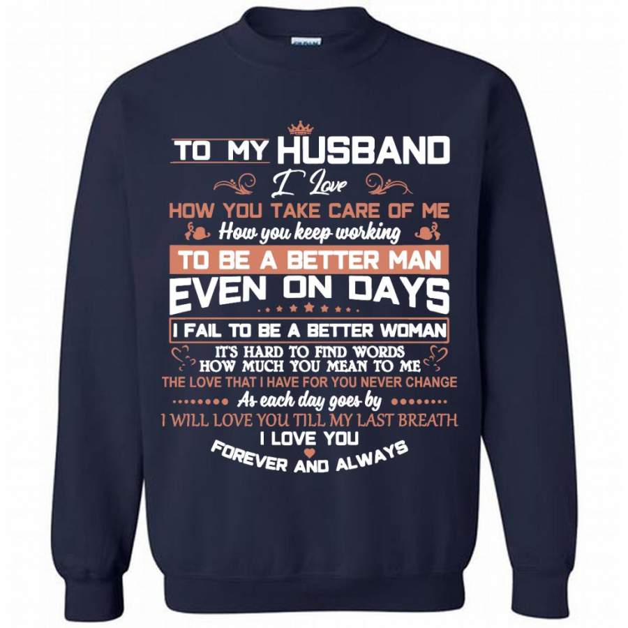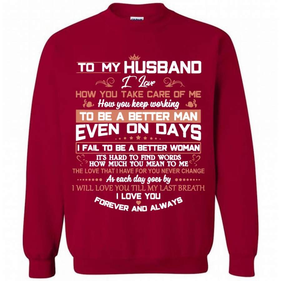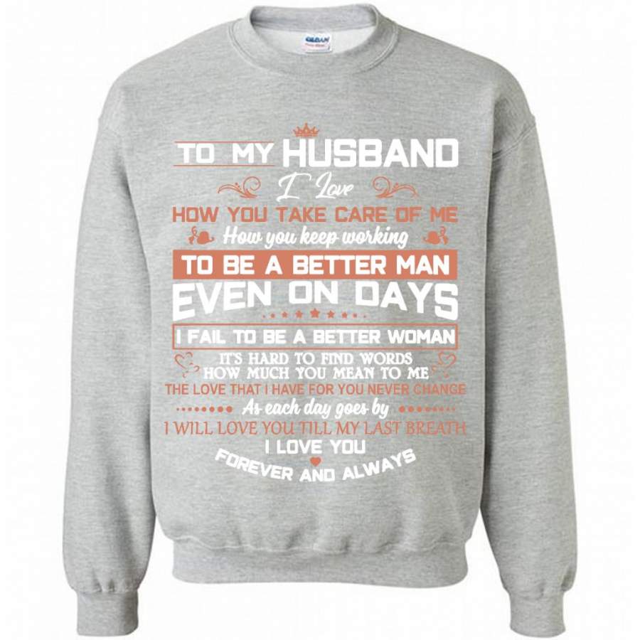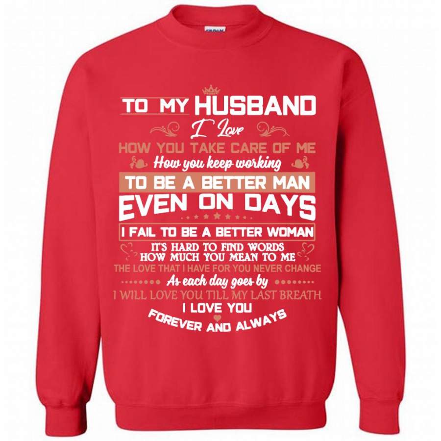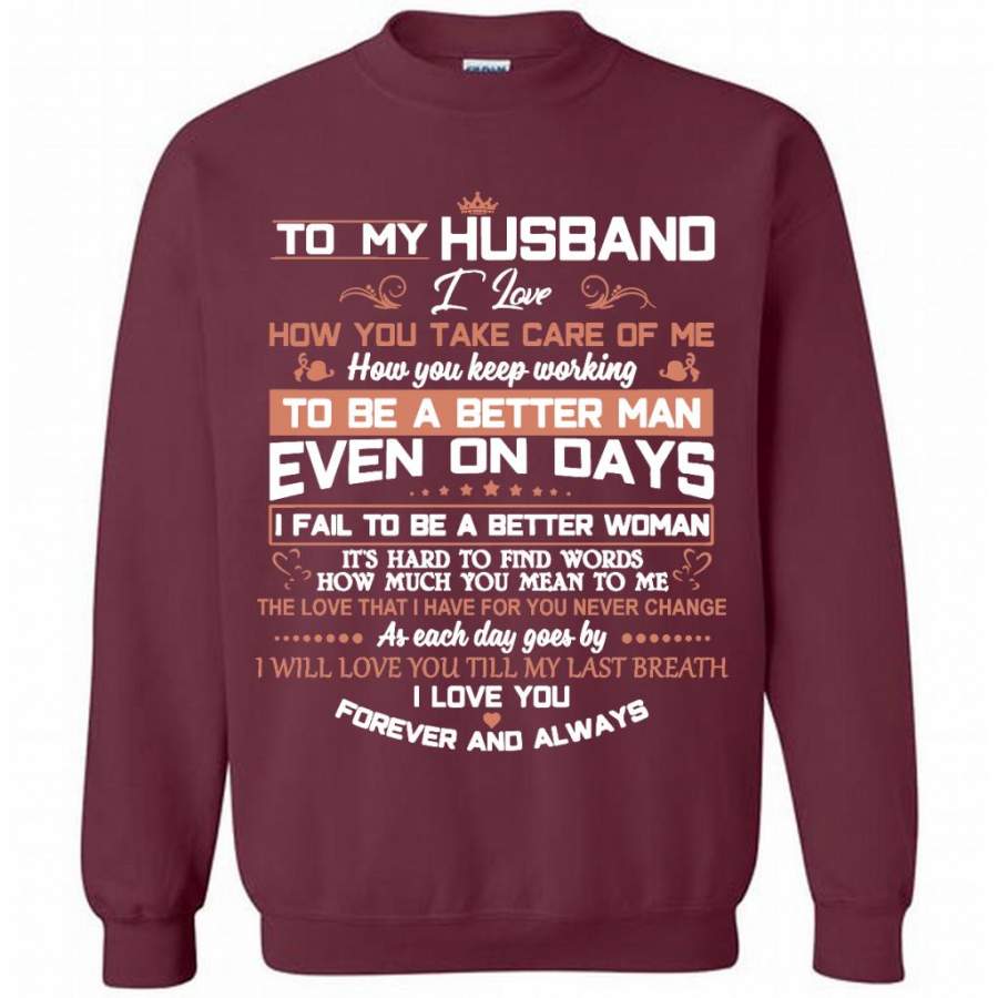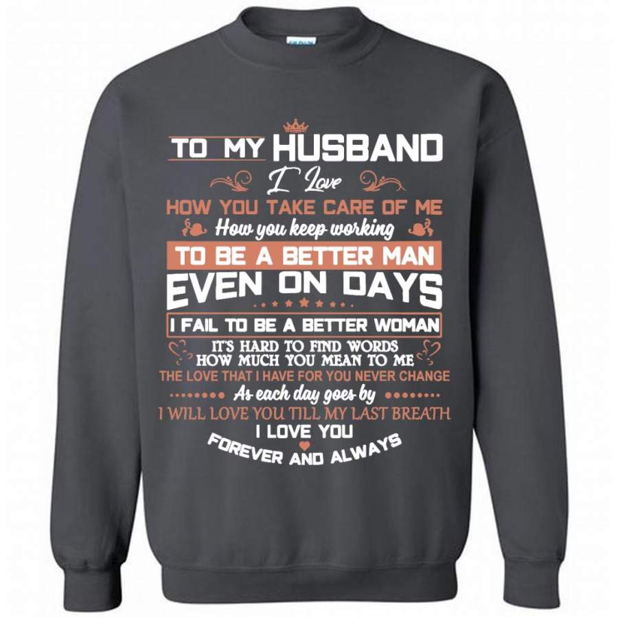 To My Husband I Love How You Take Care Of me I Love YOu Forever And Always B – Gildan Crewneck Sweatshirt