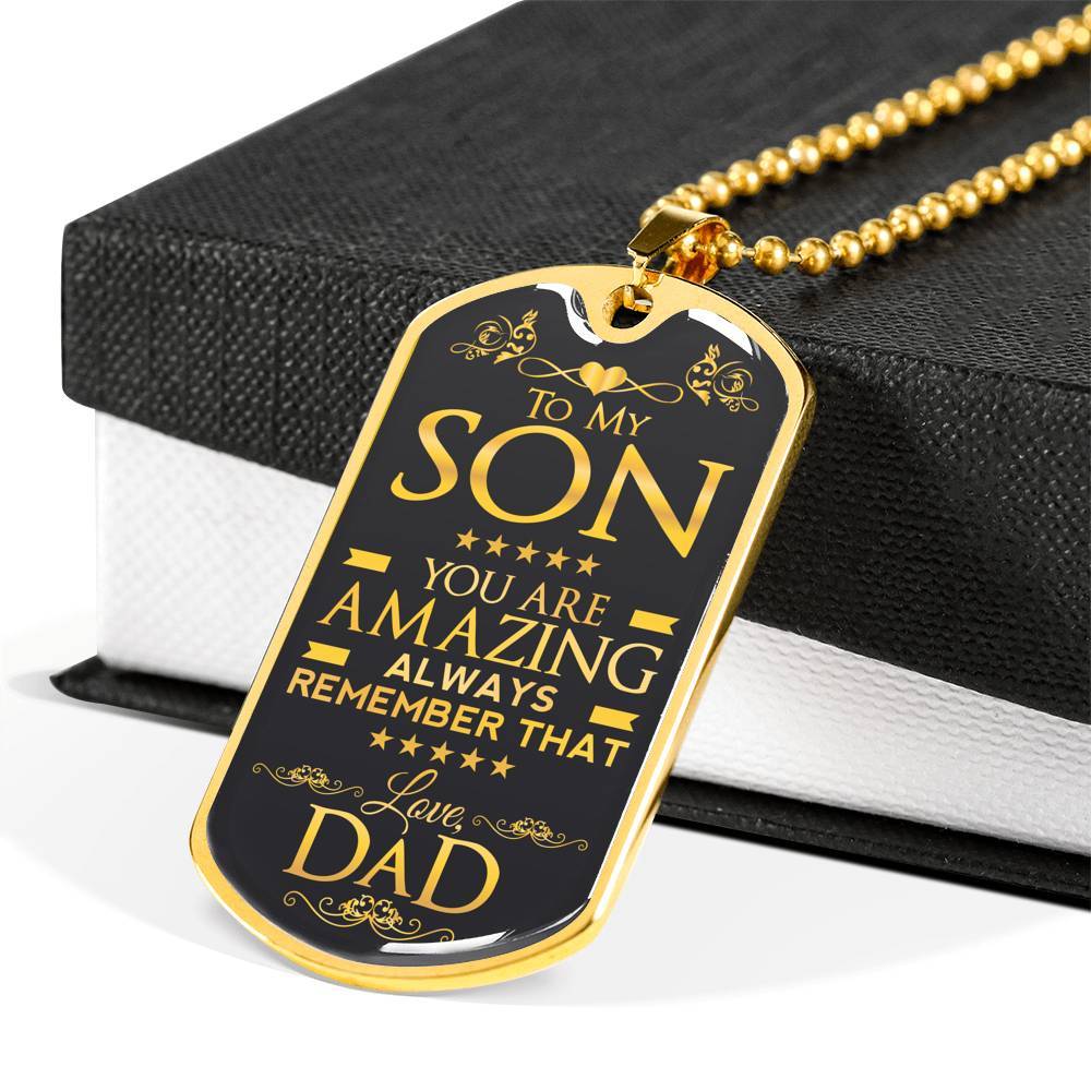 To My Son You Are Amazing Always Remember That Love Dad Dog Tag Necklace