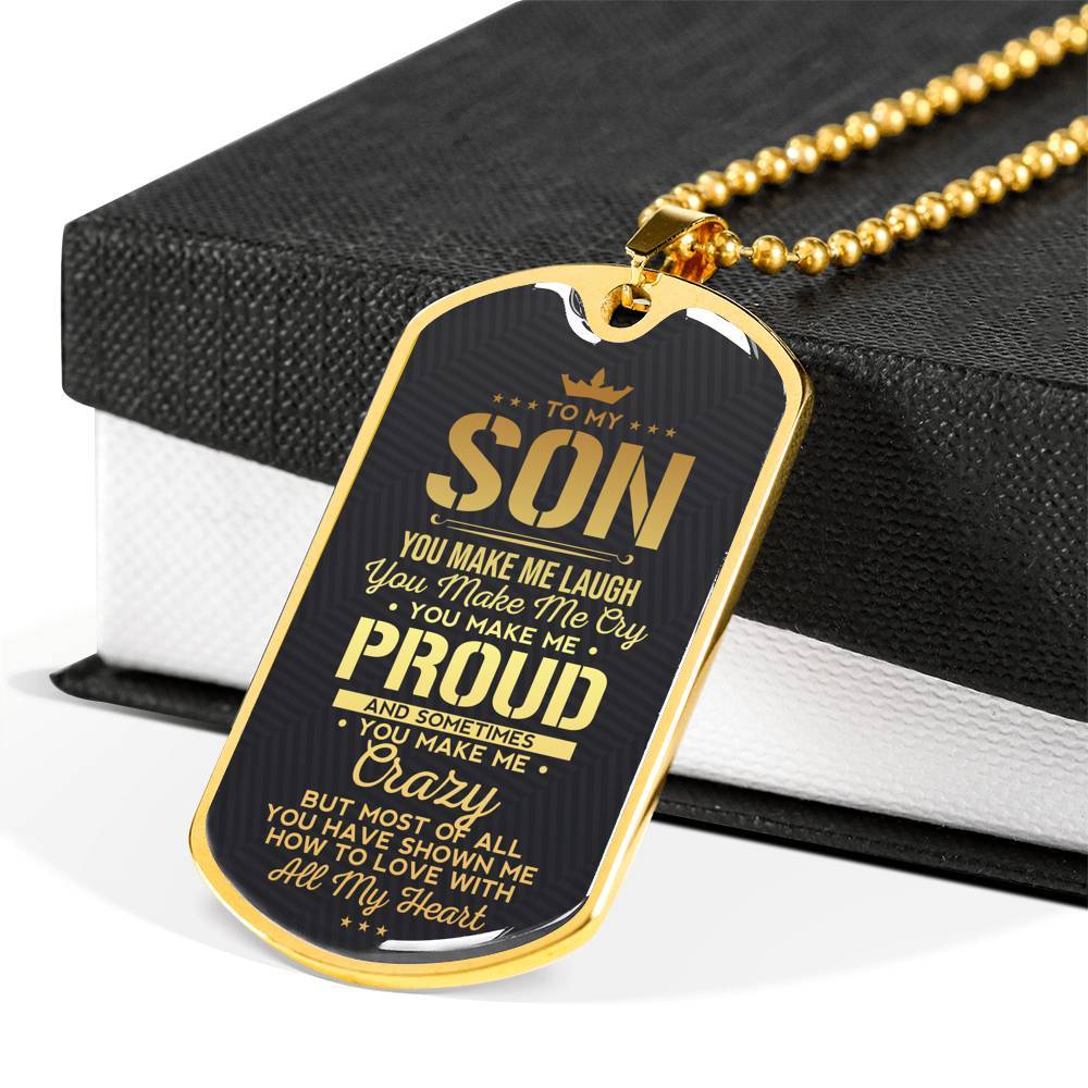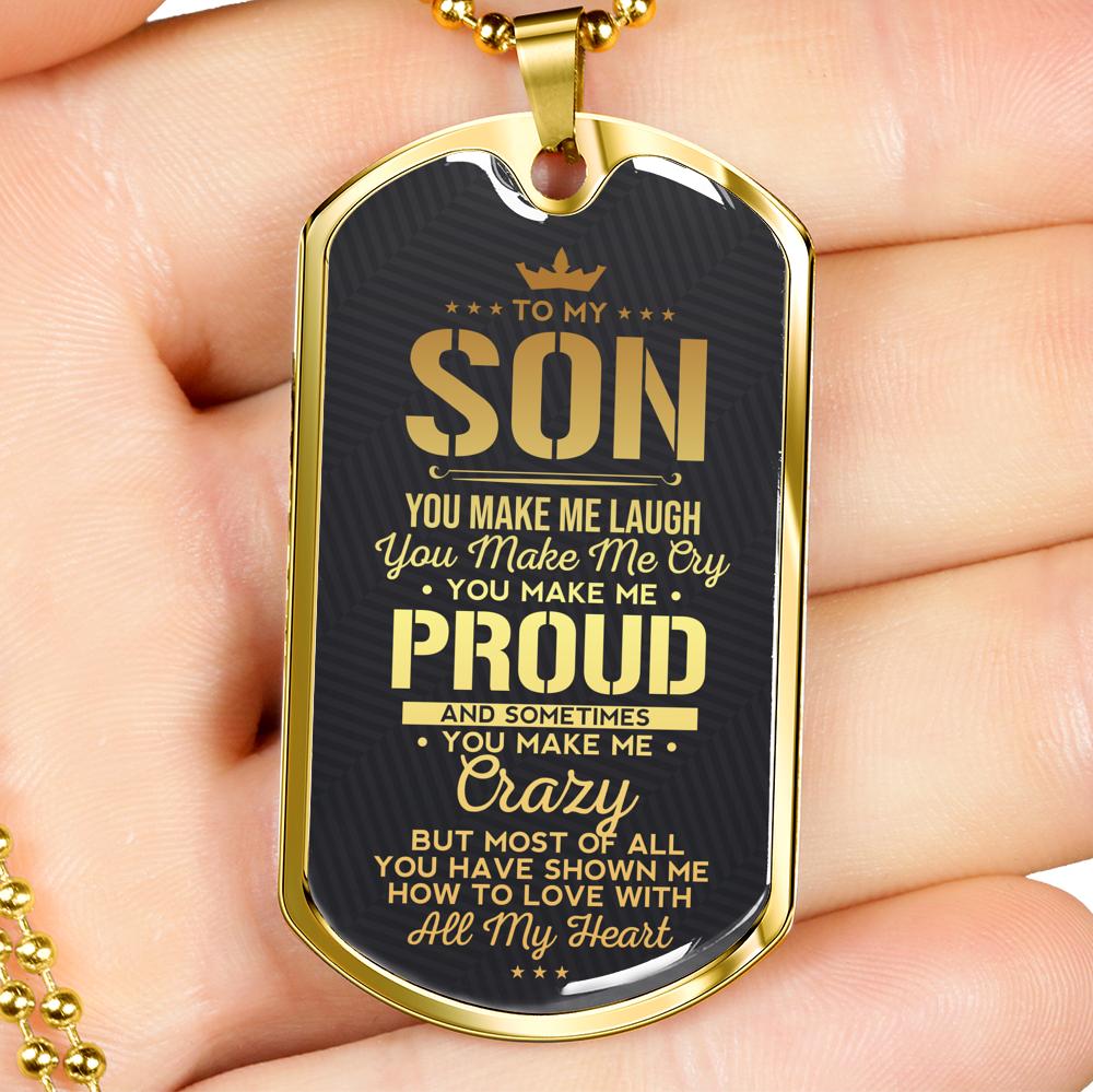 To My Son You Make Me Laugh Love Mom Dad Dog Tag Necklace