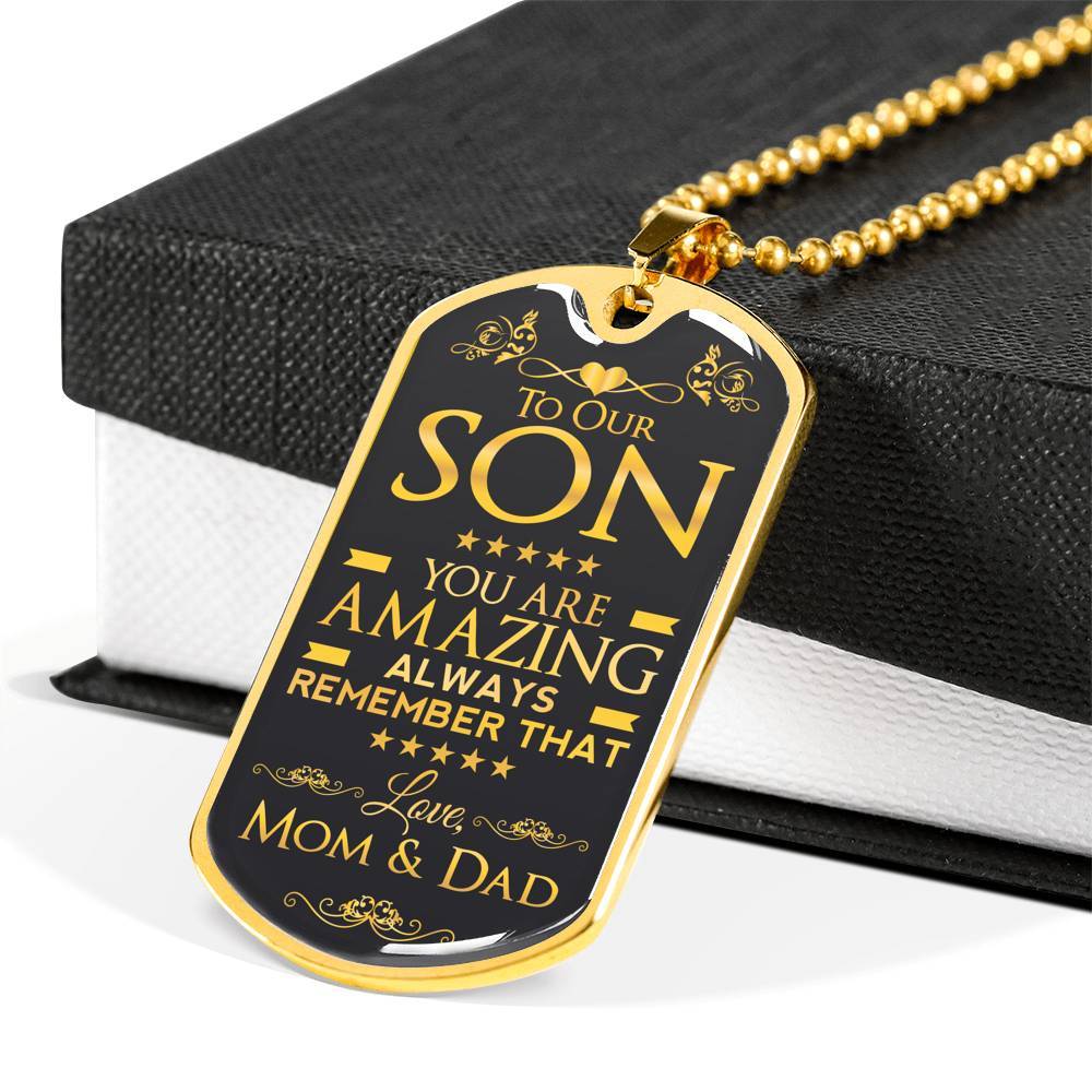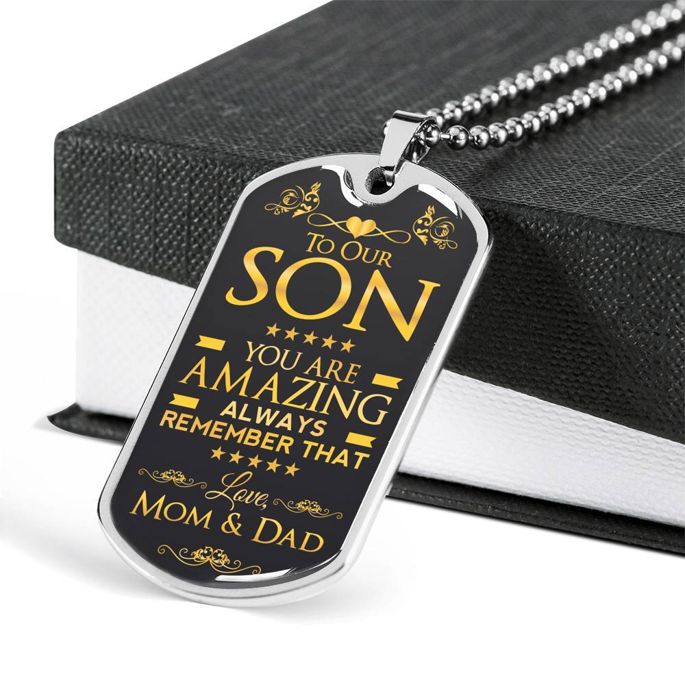 To Our Son You Are Amazing Always Remember That Love Mom & Dad Dog Tag Necklace