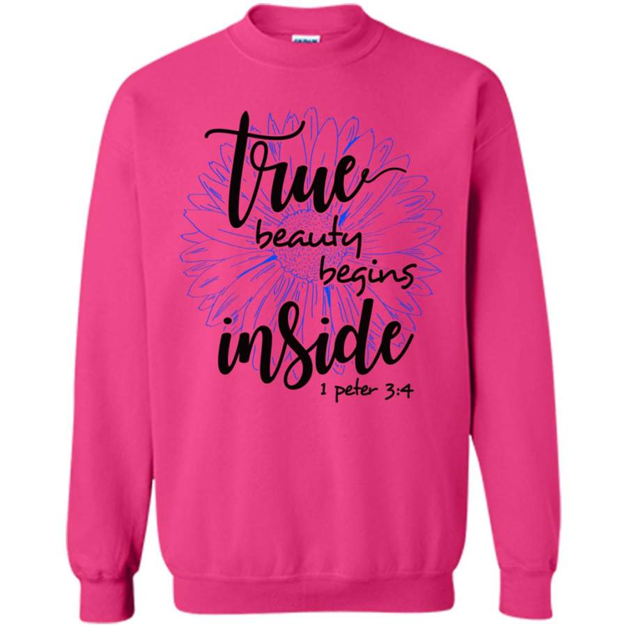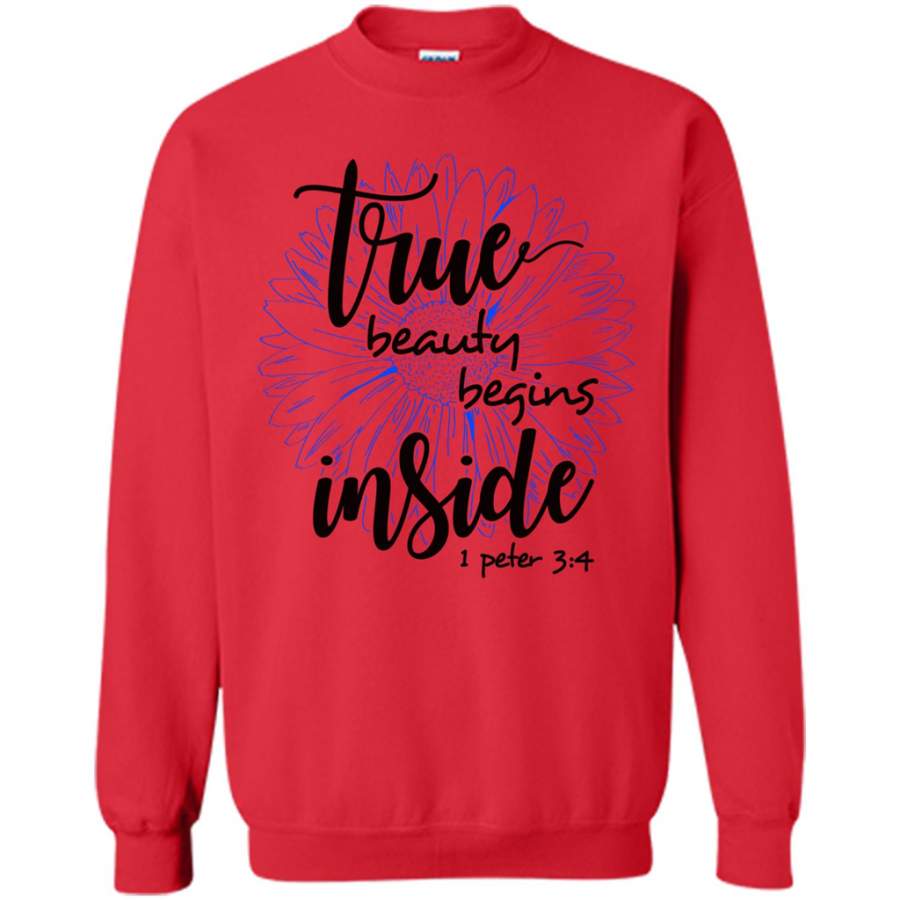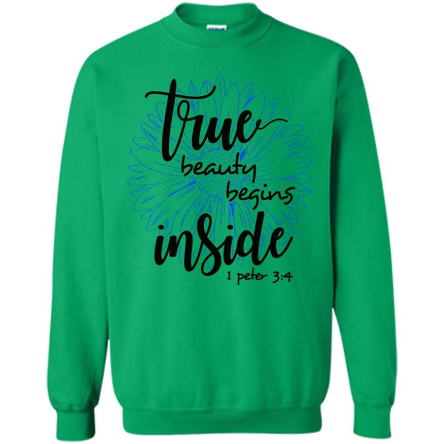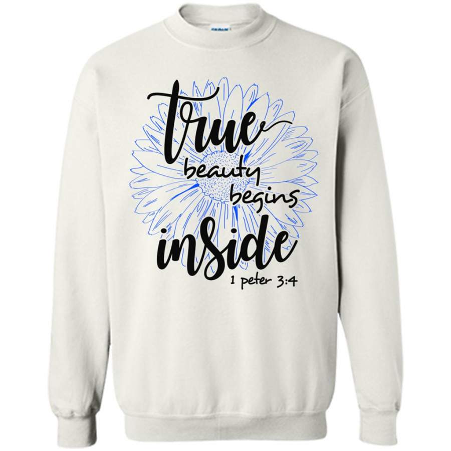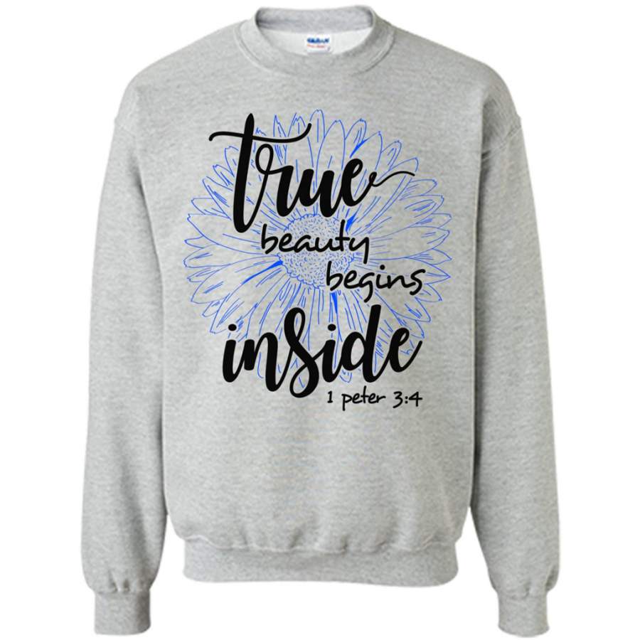 True Beauty Begins Inside SunFlower Love Jesus God w – Gildan Crewneck Sweatshirt