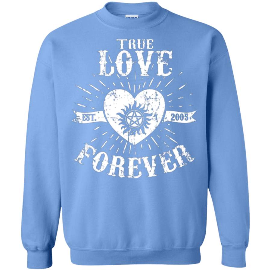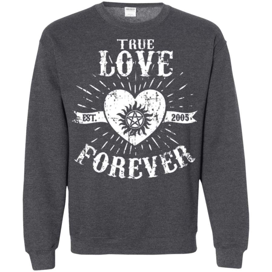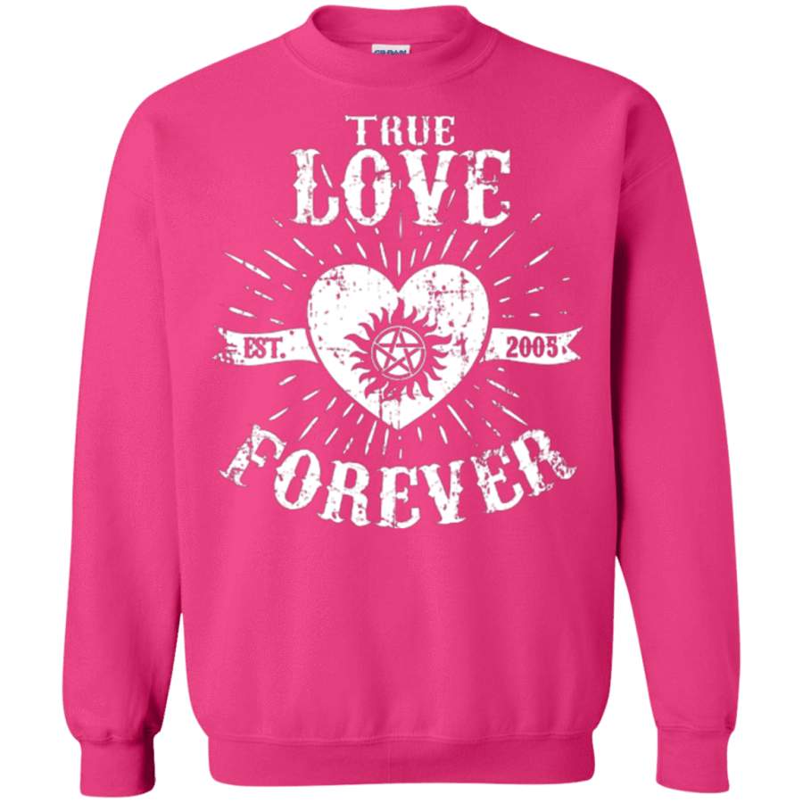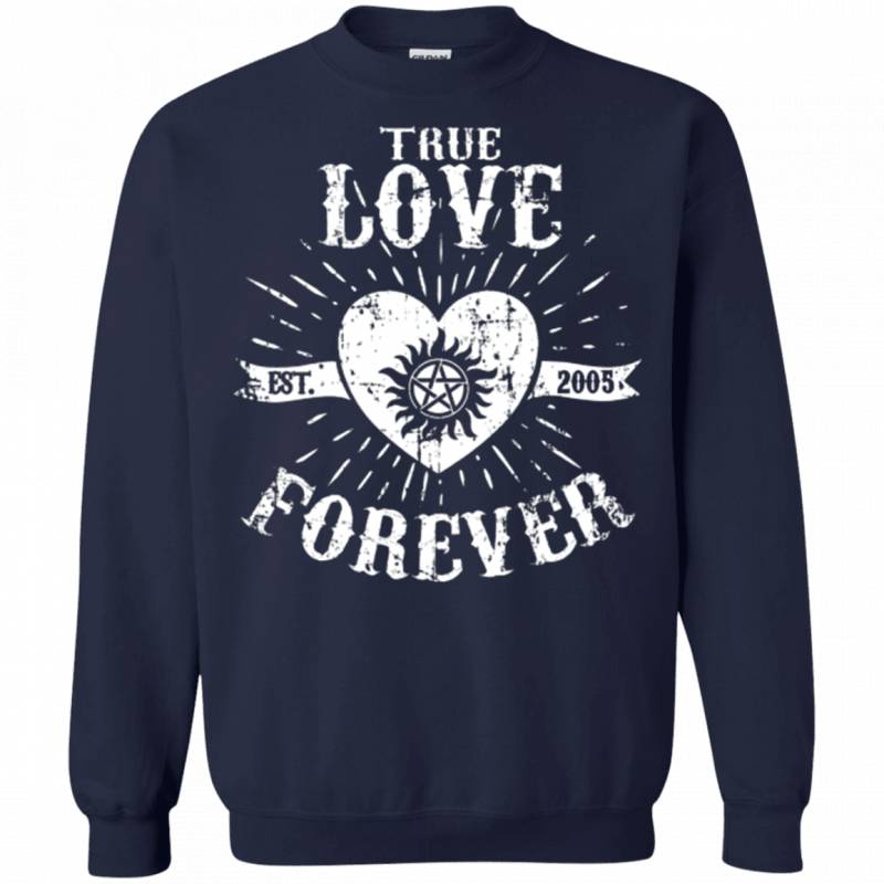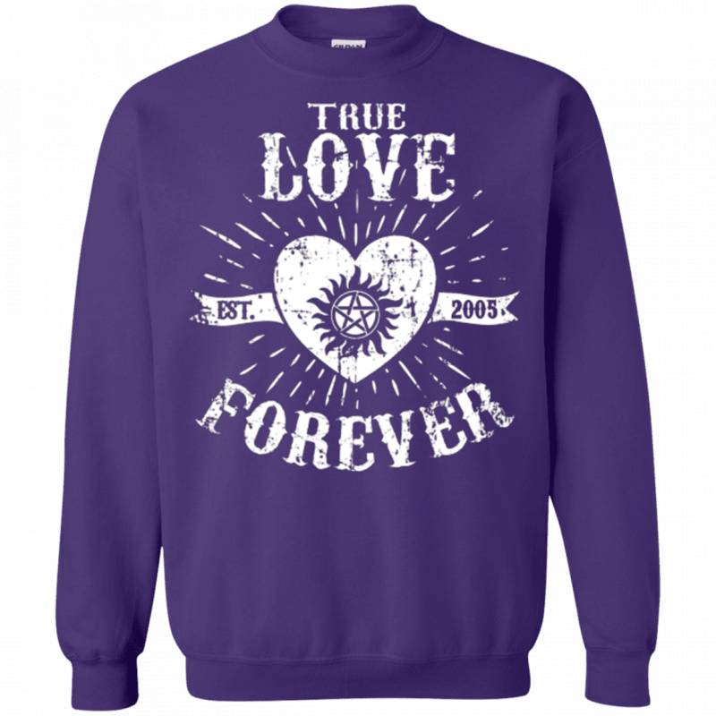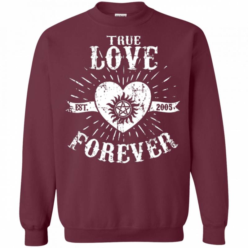 So whether you're looking to show off your own name or create a personalized gift for someone special, LateAndLow Store has got you covered. Start designing your own custom True Love Forever Supernatural Crewneck Sweatshirt print-on-demand product today, and let us bring your vision to life!