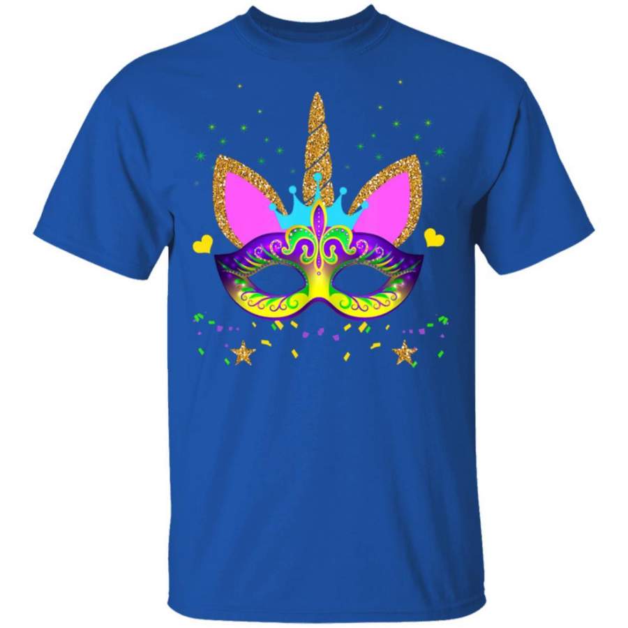 Unicorn and Mask Mardi Gras Girl Kid Toodler Women T Shirt Costume Mask T-Shirt Fat Tuesday Tshirt Carnival Festival Tee Friends Shirts