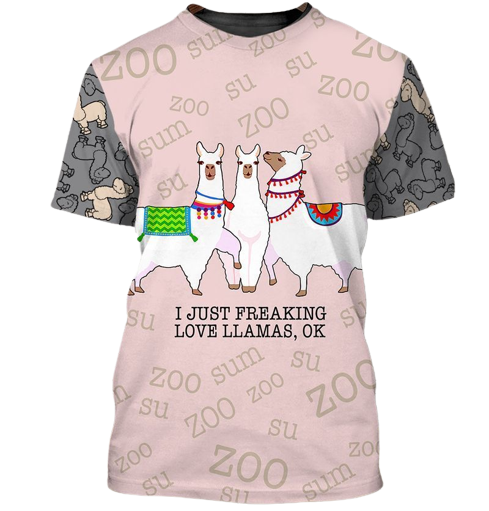 Unifinz Llama T-Shirt I Just Freaking Love Llamas Ok Pink Grey Shirt 2022