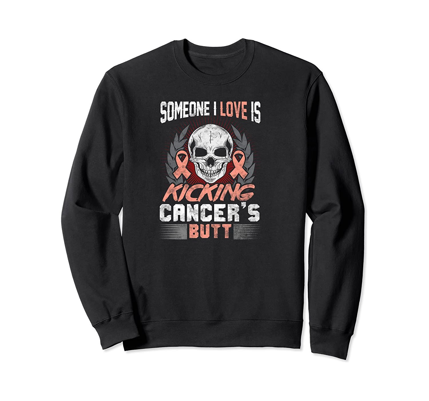 Uterine Cancer Hoodie Someone I Love Is Kicking Butt Skull T-Shirt, Sweatshirt, Tank Top