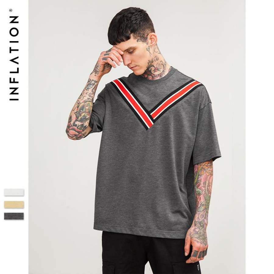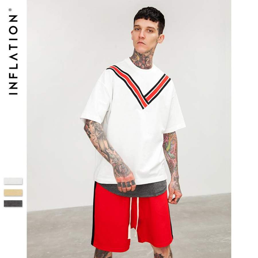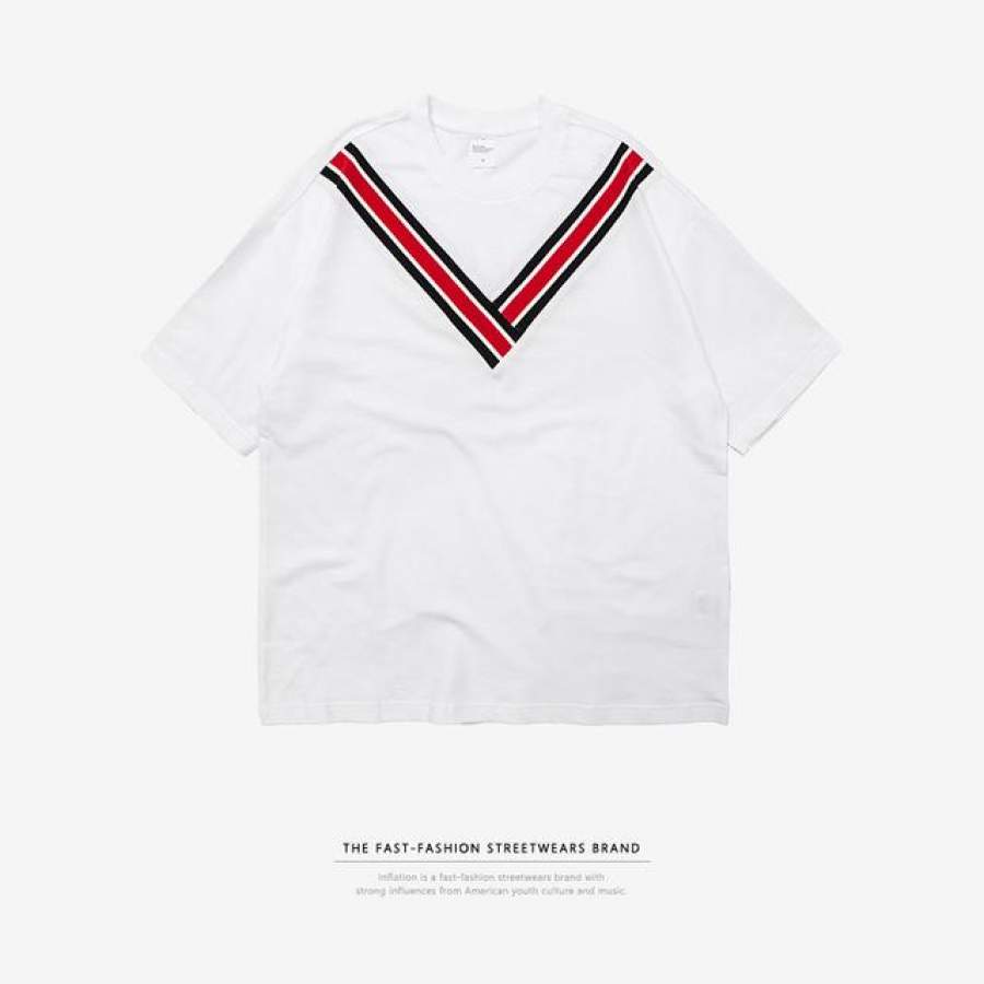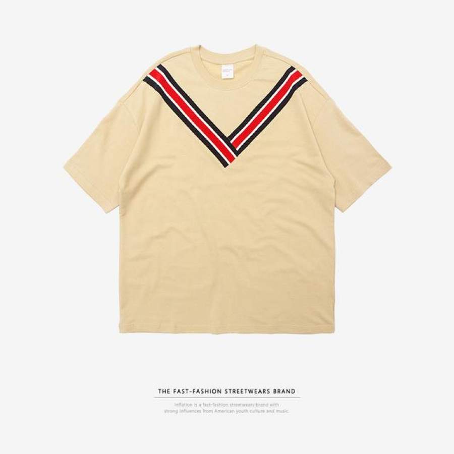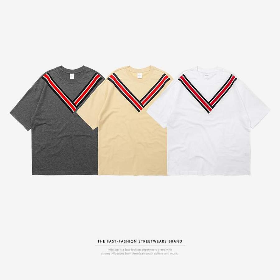 V Stripe T-shirt summer mens casual T Shirt streetwear clothing man’s loose top tee