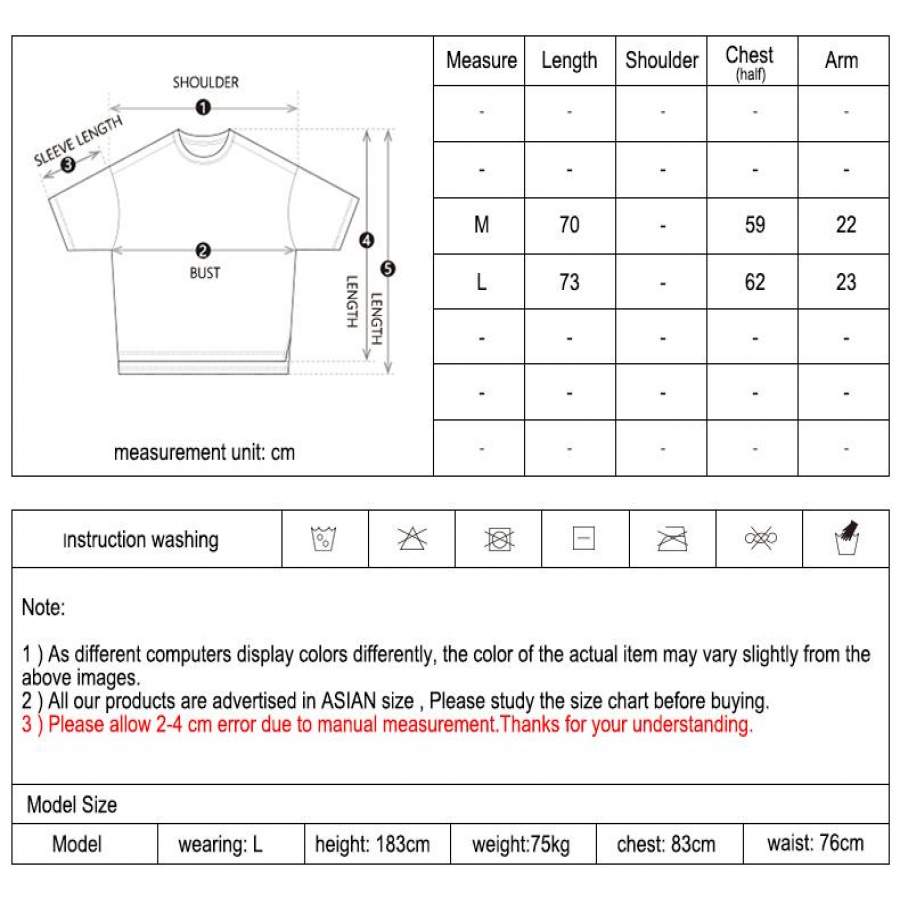 | Size | S | M | L | XL | 2XL | 3XL | 4XL | 5XL |