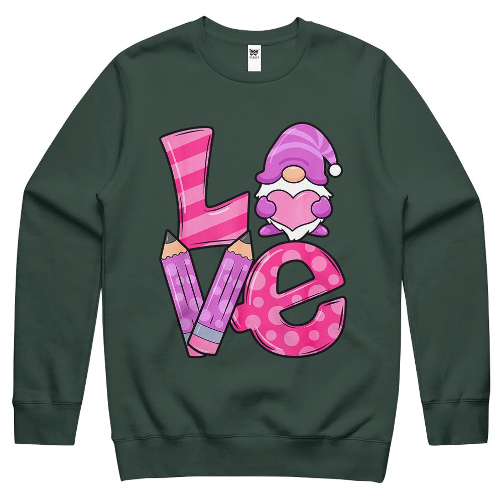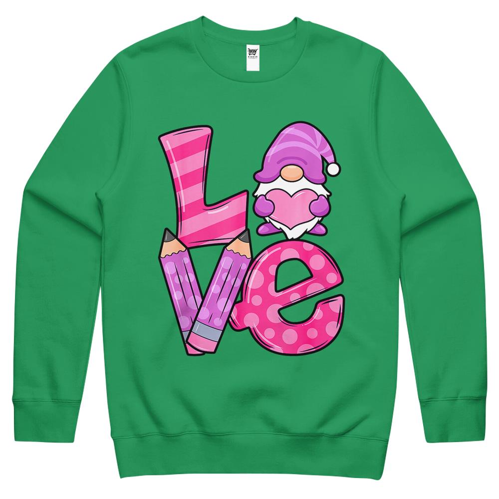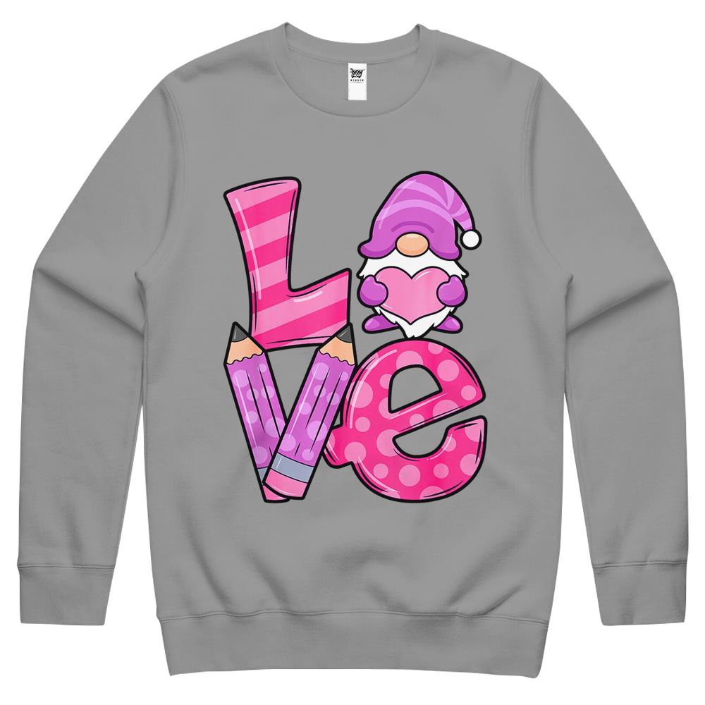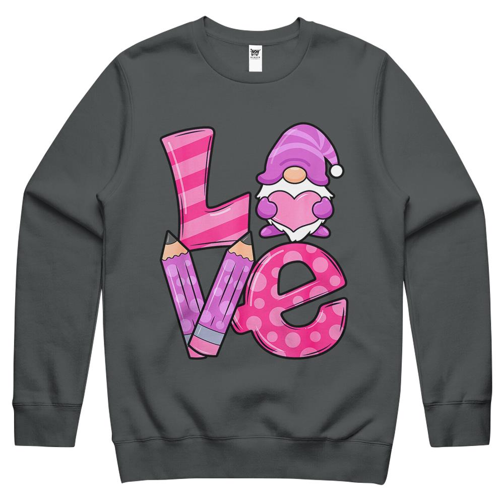 Valentine Teacher Squad Gnome Love Sweethearts Heart Women Crewneck Sweatshirt