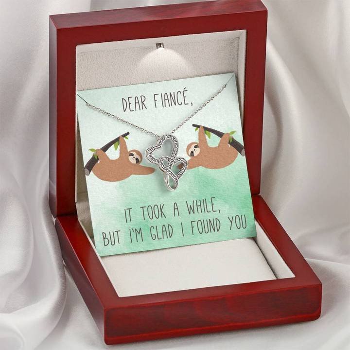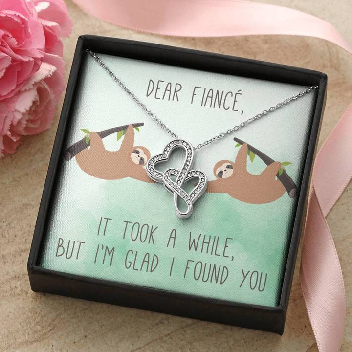 Valentines Day Gifts For Her, Double Heart Necklace For Fiance/Girlfriend, Couple Sloth