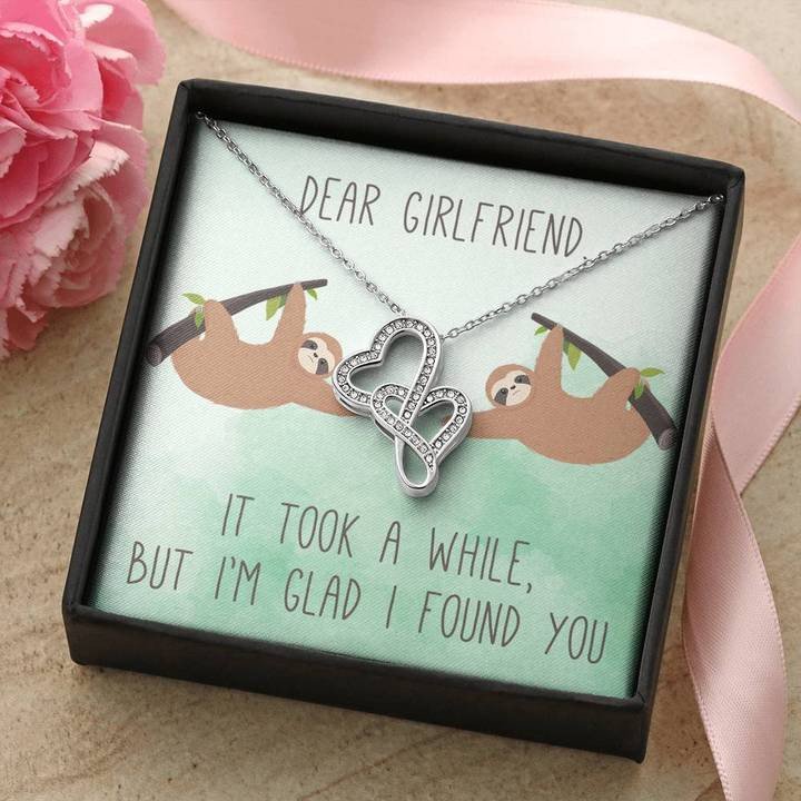Valentines Day Gifts For Her, Double Heart Necklace For Girlfriend, Couple Sloth