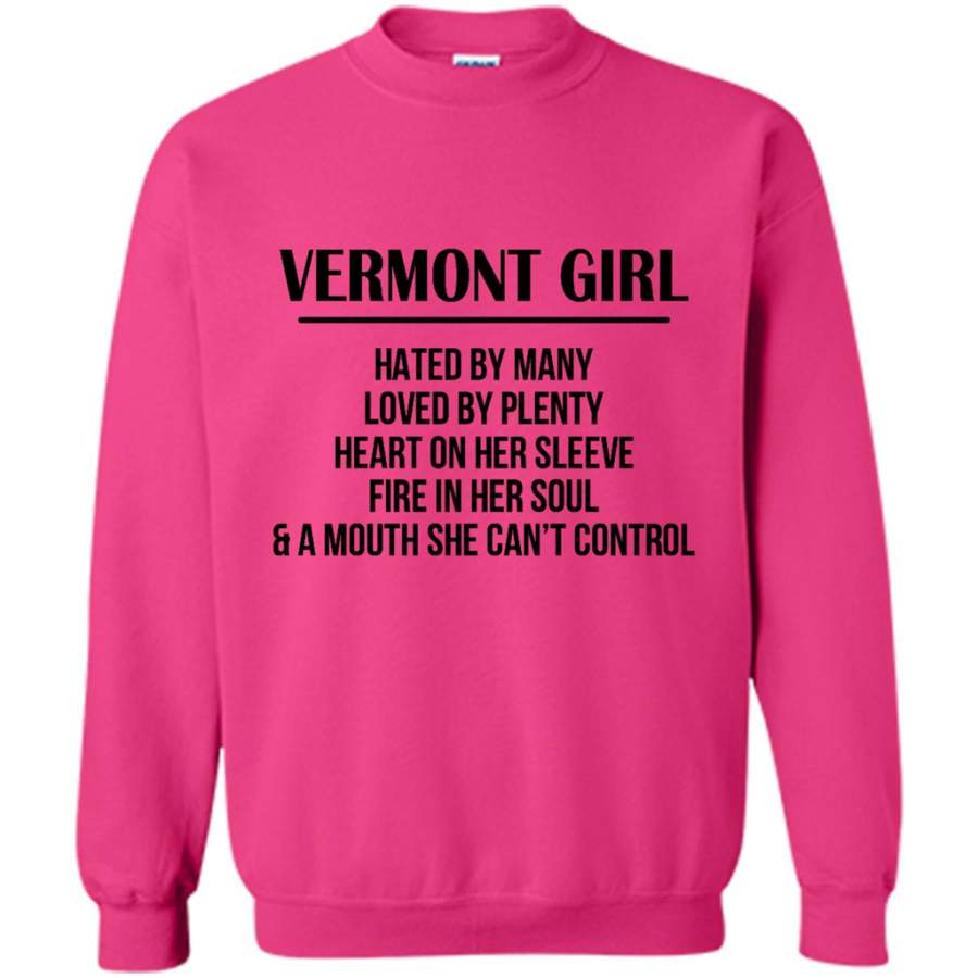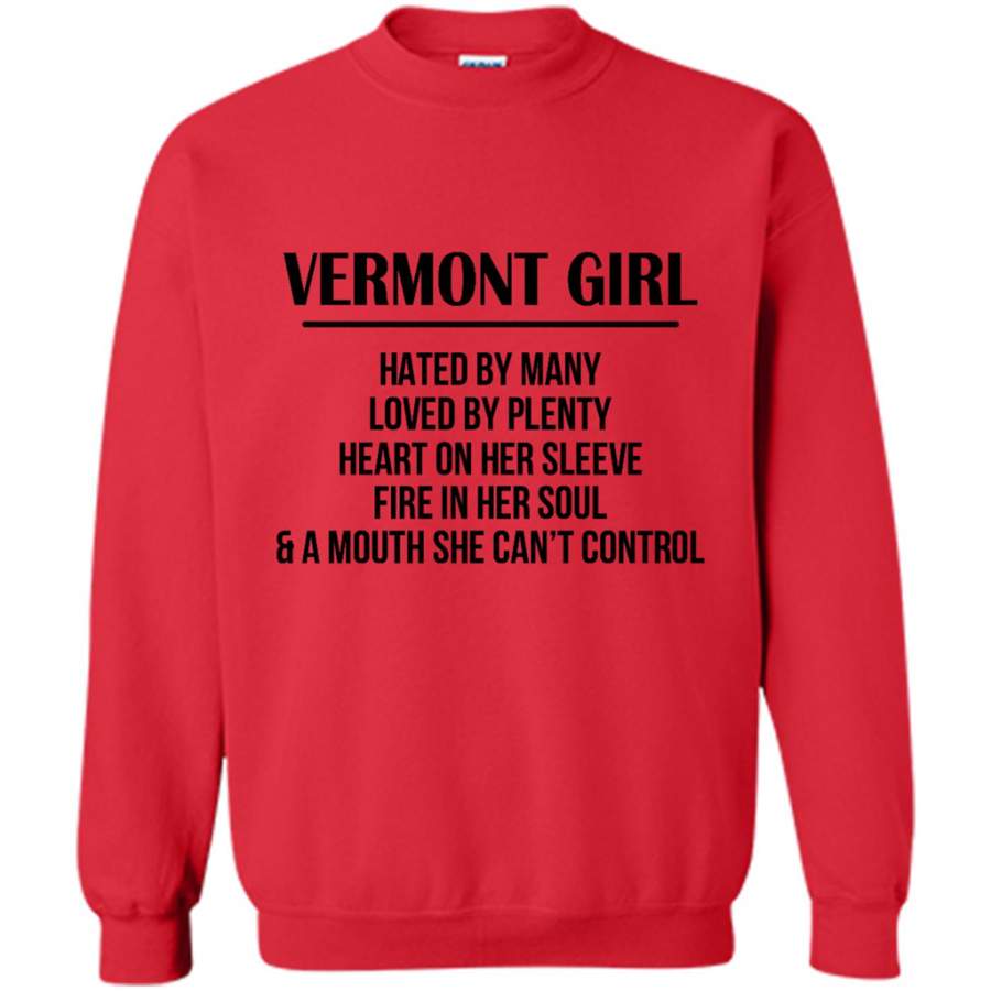 Vermont Girl Hated By Many Loved By Plenty Heart On Her Sleeve Fire In Her Soul A Mouth She Can’t Control – Gildan Crewneck Sweatshirt