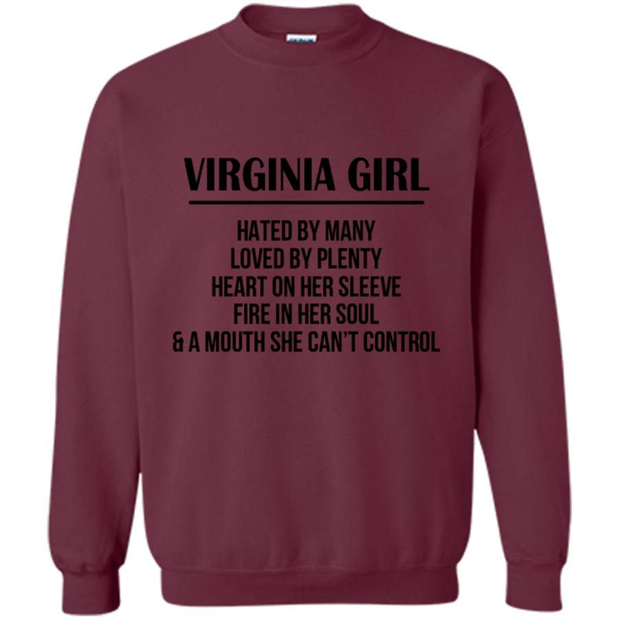 Virginia Girl Hated By Many Loved By Plenty Heart On Her Sleeve Fire In Her Soul A Mouth She Can’t Control – Gildan Crewneck Sweatshirt