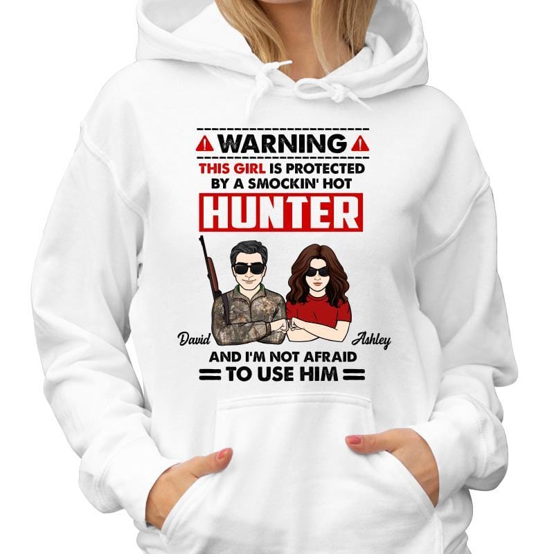 Warning Protected By Hunter Hunting Couple Personalized Hoodie Sweatshirt