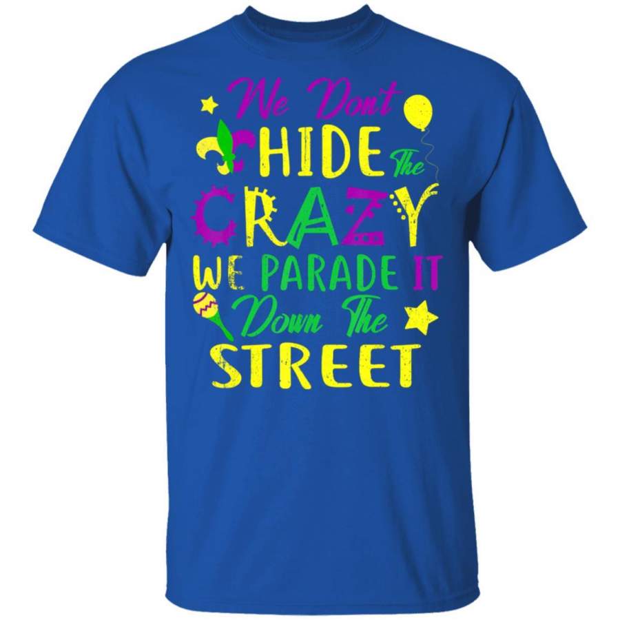 We Don’t Hide Crazy Parade Street Mardi Gras T Shirt Costume Mask T-Shirt Fat Tuesday Tshirt Carnival Festival Tee Friends Shirts