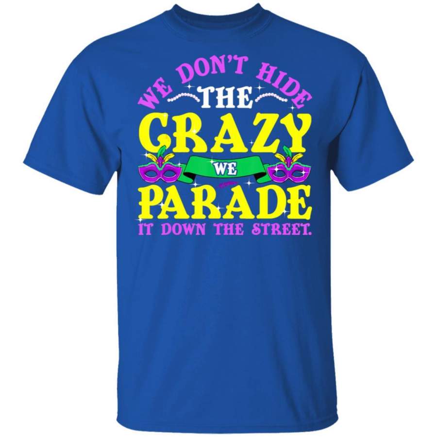 We dont Hide the Crazy we Parade it down street Mardi Gras T Shirt Costume Mask T-Shirt Fat Tuesday Tshirt Carnival Festival Tee Friends Shirts