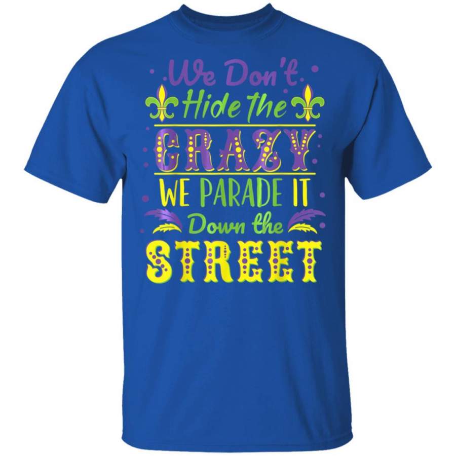 We Dont Hide the Crazy We Parade It Mardi Gras T Shirt Costume Mask T-Shirt Fat Tuesday Tshirt Carnival Festival Tee Friends Shirts