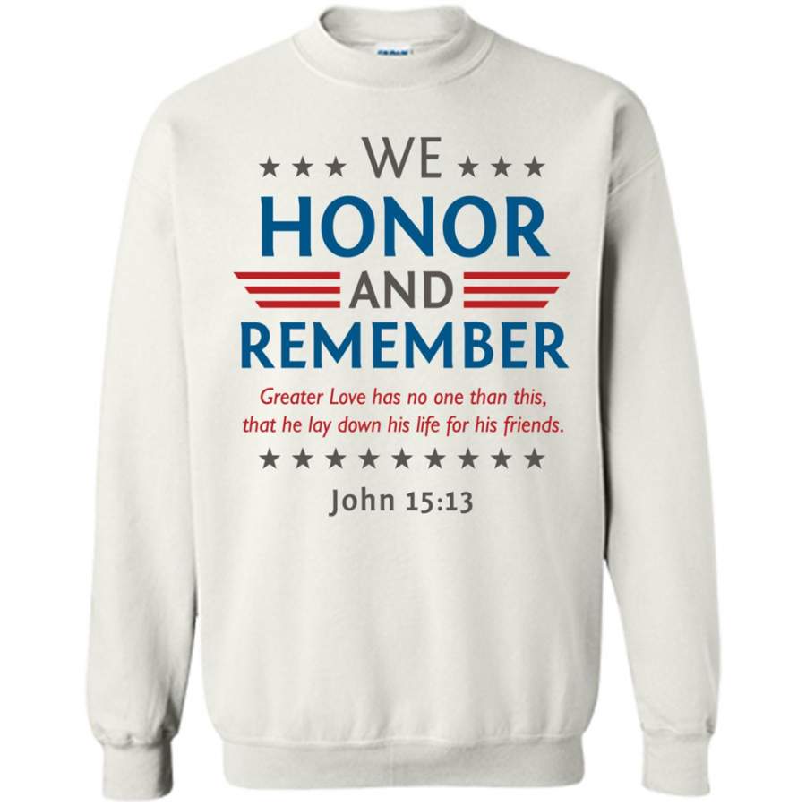 We Honor And Remember Greater Love has no one than this John 15-13 w – Gildan Crewneck Sweatshirt