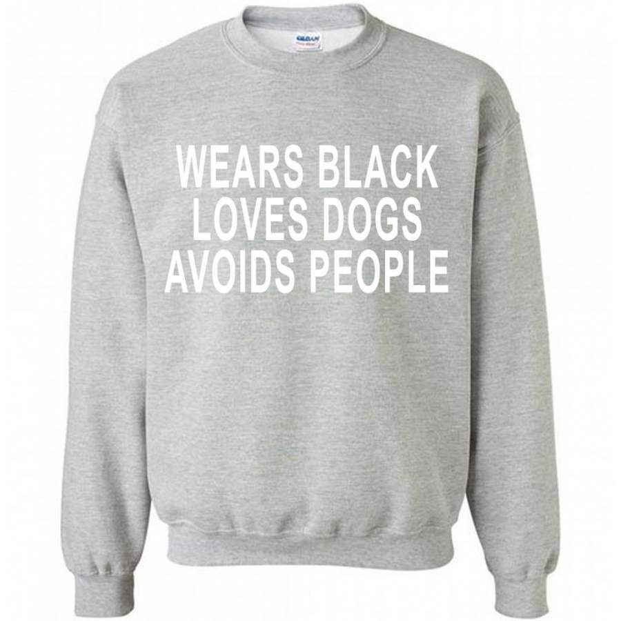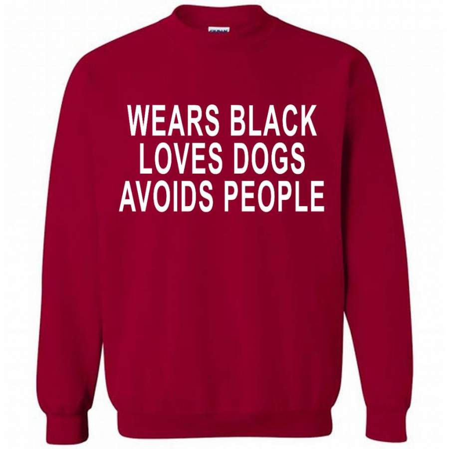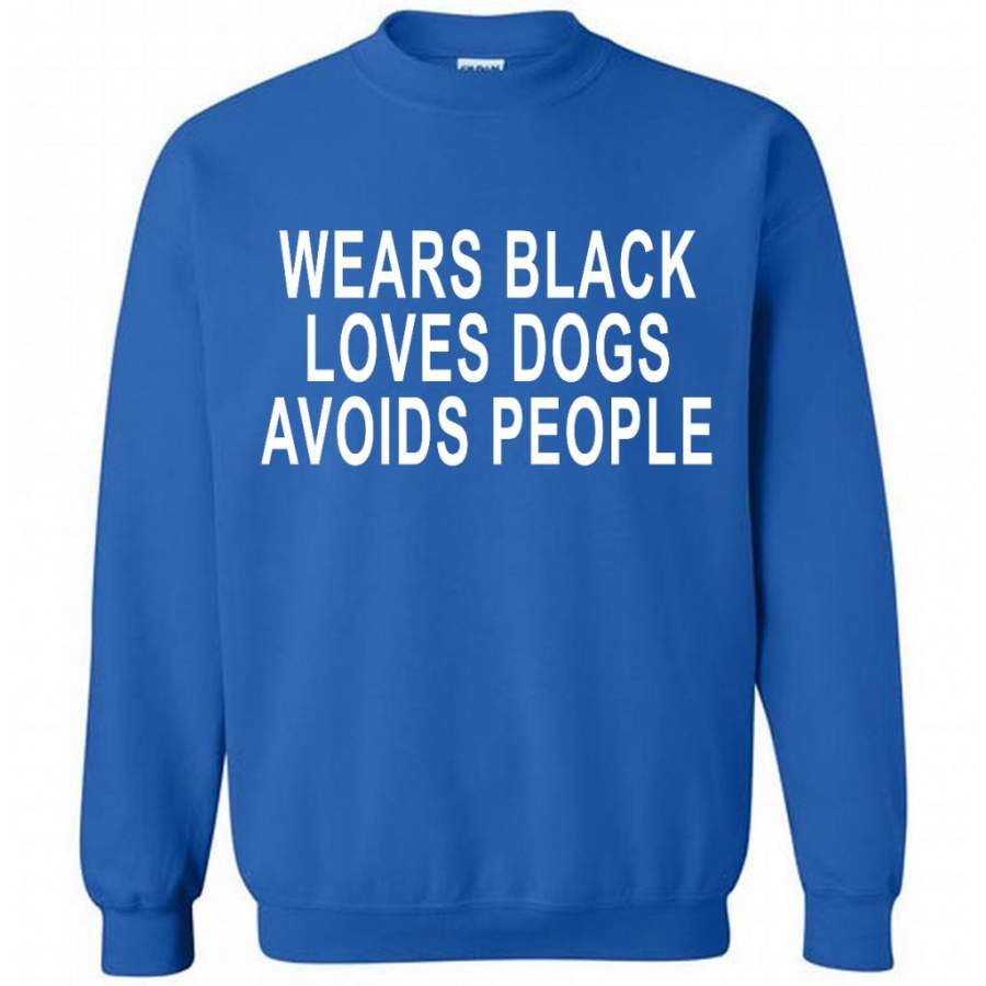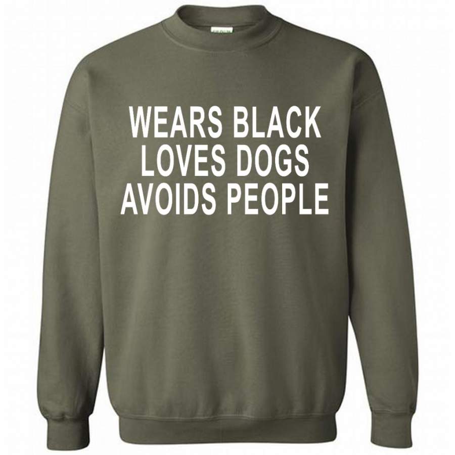 Wears Black Loves Dogs Avoids People B – Gildan Crewneck Sweatshirt
