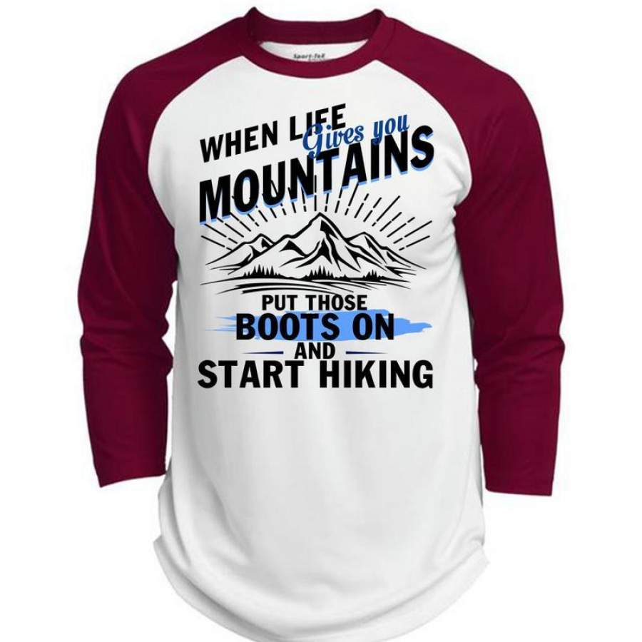 When Life Gives You Mountains T Shirt, I Love Hiking T Shirt, Awesome T-Shirts (Polyester Game Baseball Jersey)