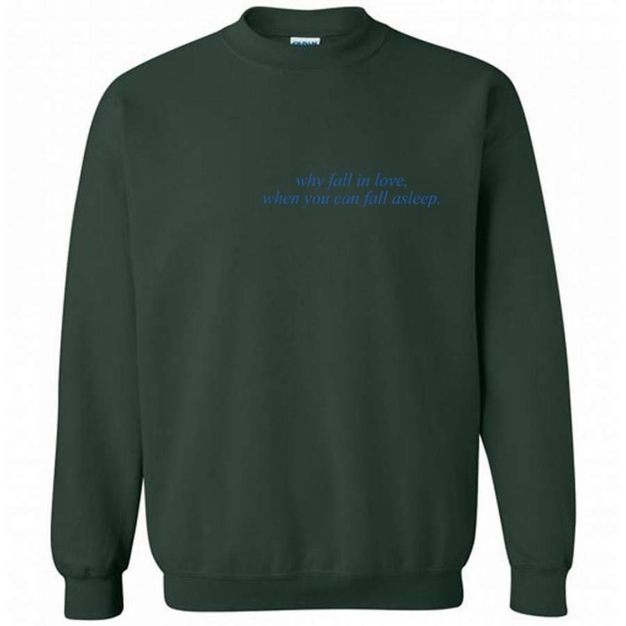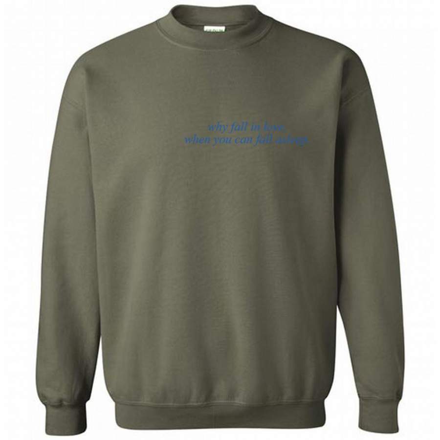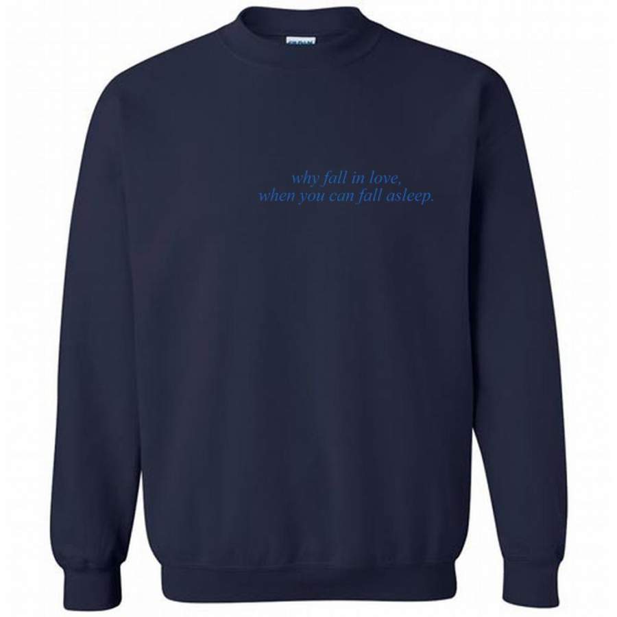 So whether you're looking to show off your own name or create a personalized gift for someone special, LateAndLow Store has got you covered. Start designing your own custom Why Fall In Love, When You Can Fall Asleep, Pocket Design – Gildan Crewneck Sweatshirt print-on-demand product today, and let us bring your vision to life!
