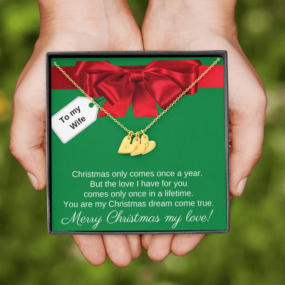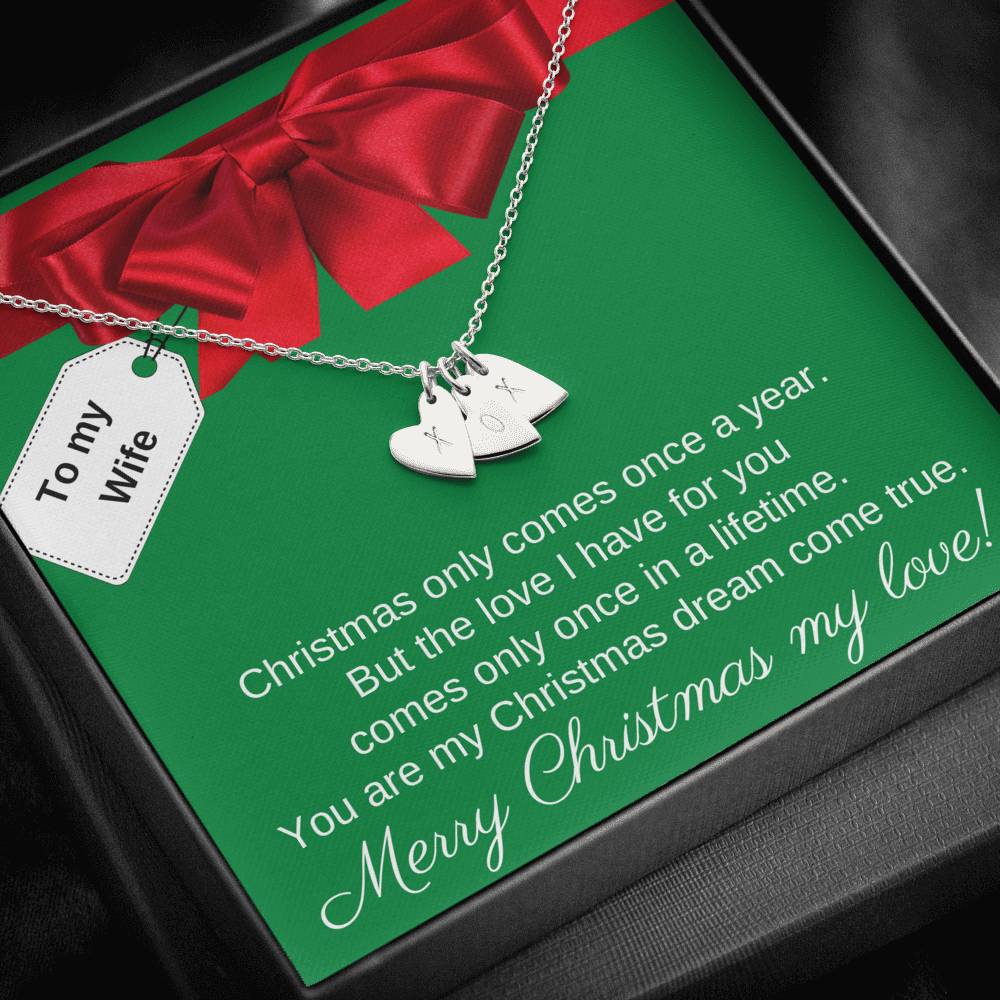Wife Necklace Gift. Personalized Heart Charms On Romantic Message Card. Couple Christmas Jewelry. Love You!