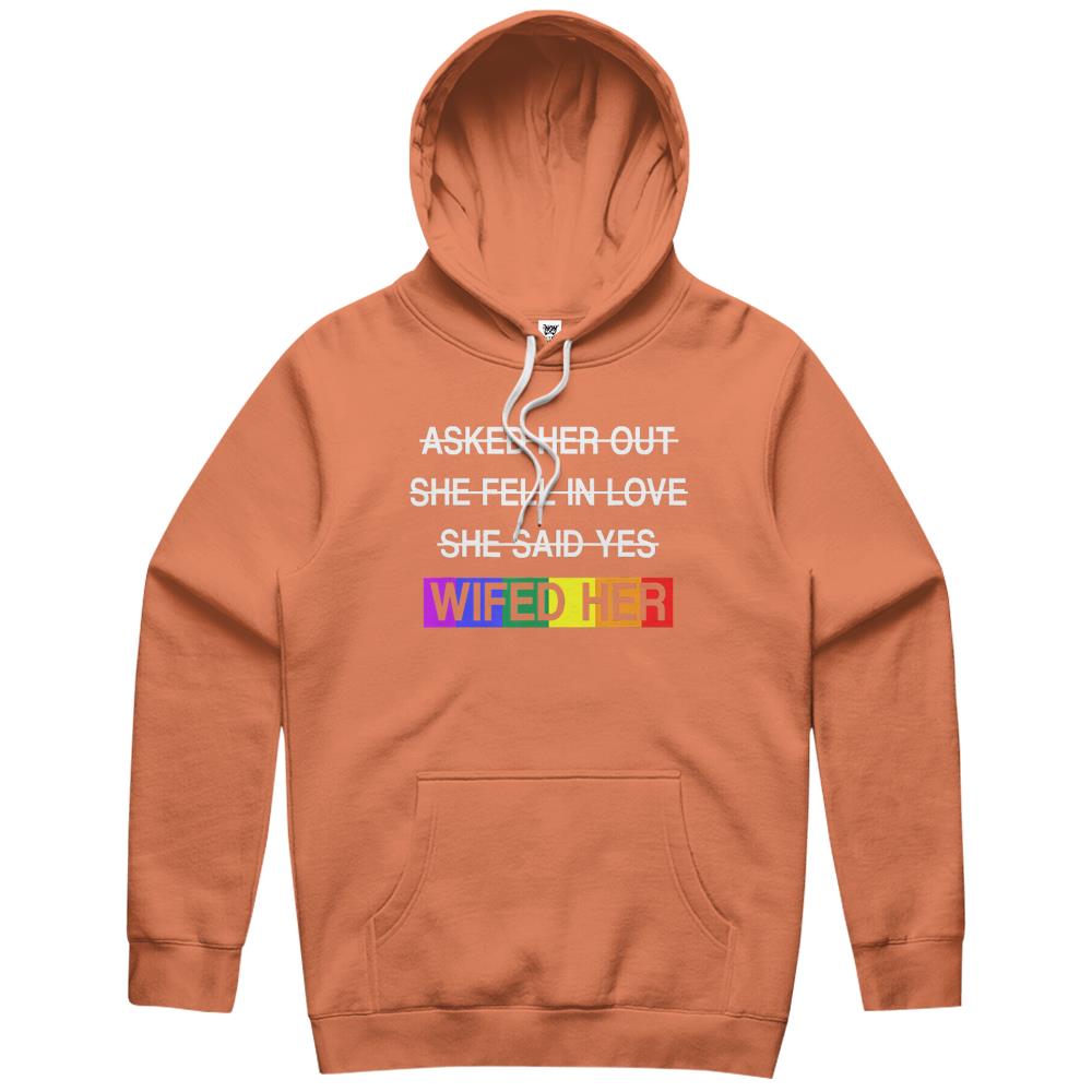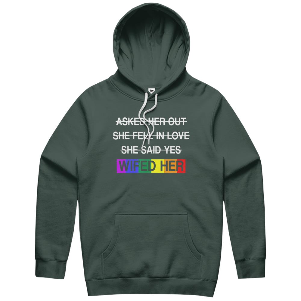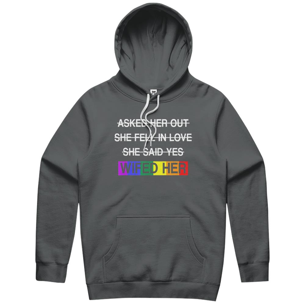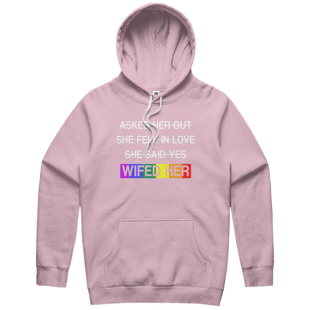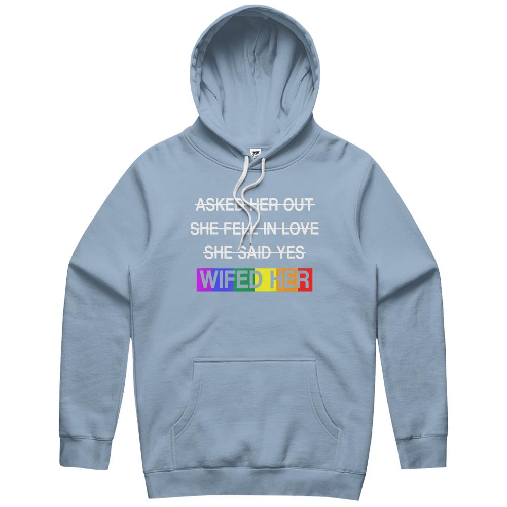 So whether you're looking to show off your own name or create a personalized gift for someone special, LateAndLow Store has got you covered. Start designing your own custom Wifed Her Lgbtq Romantic Lesbian Couples Wedding Day Gift Hoodie print-on-demand product today, and let us bring your vision to life!