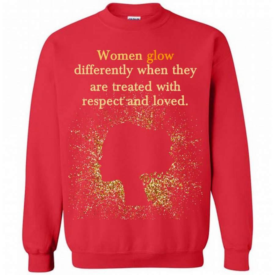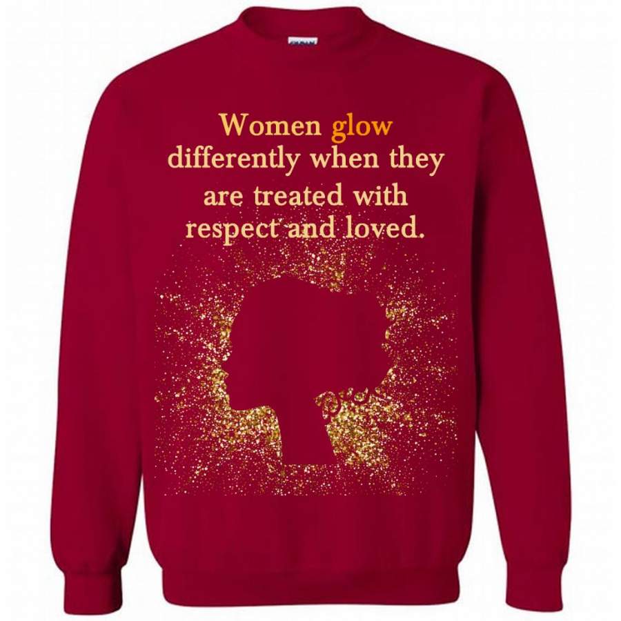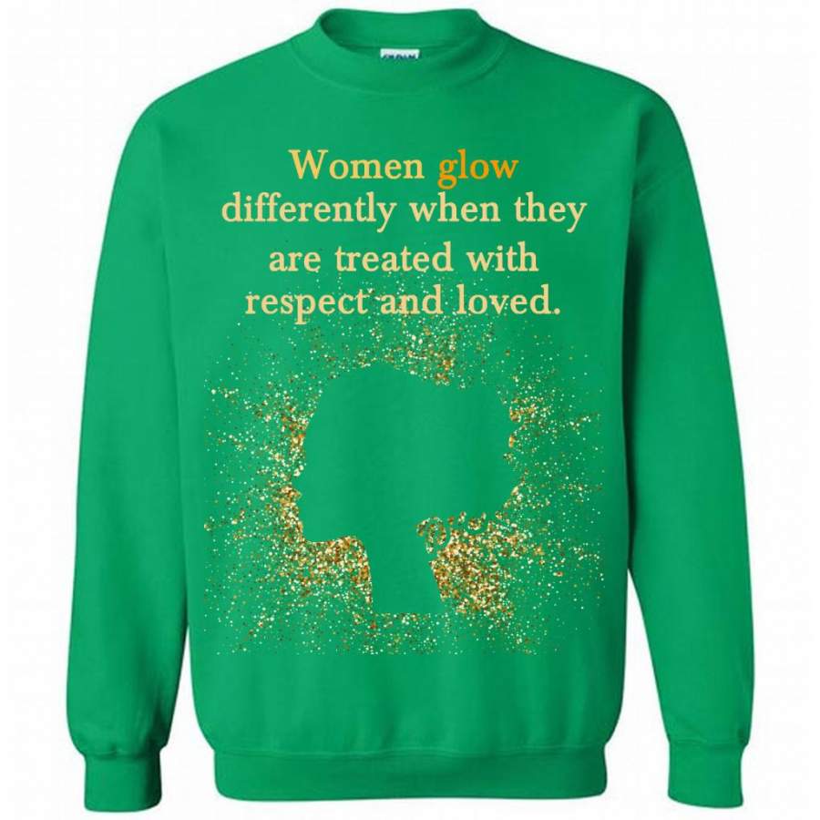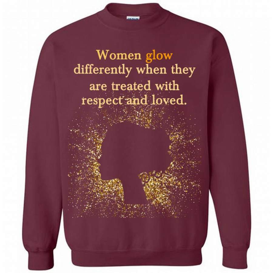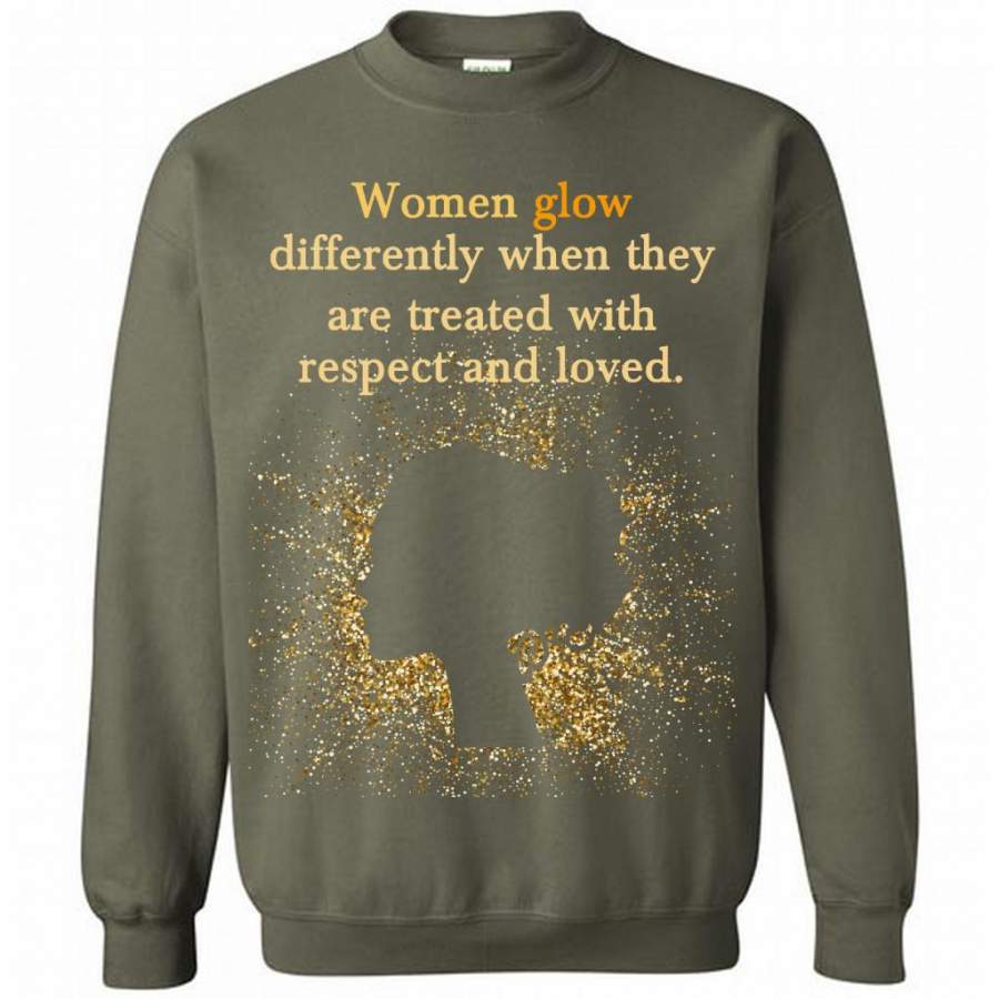 Women Glow Differently When They Are Treated With Respect And Loved – Gildan Crewneck Sweatshirt