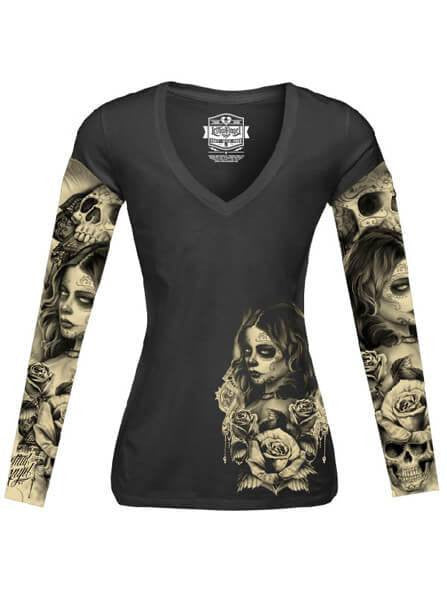 Women’S Love Death Tattoo Sleeve Tee By Lethal Angel
