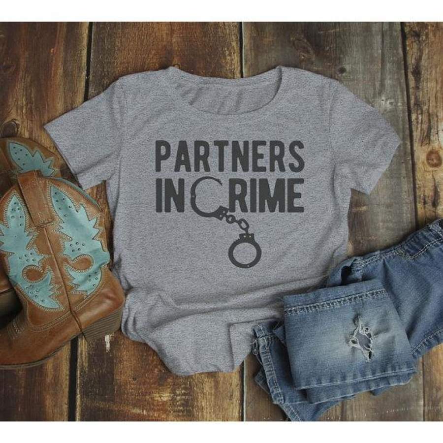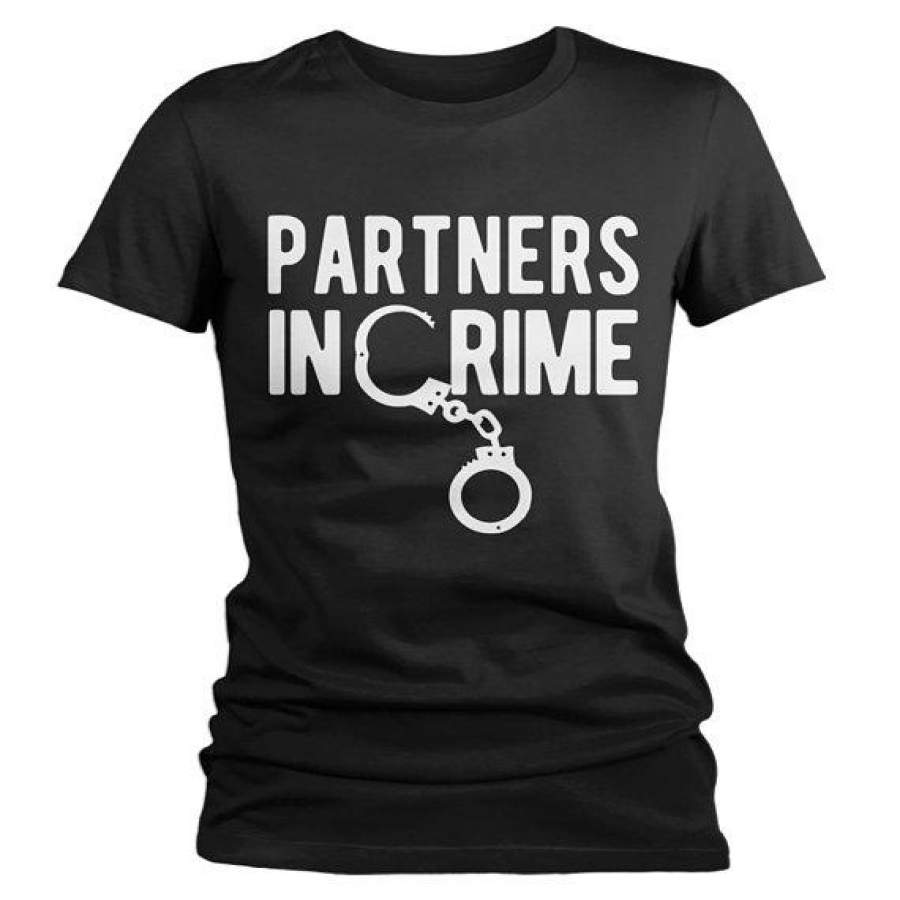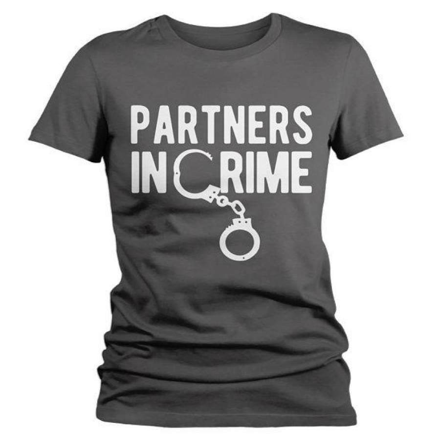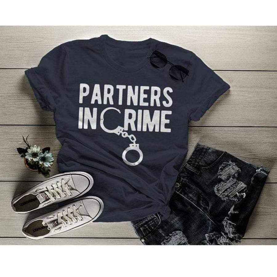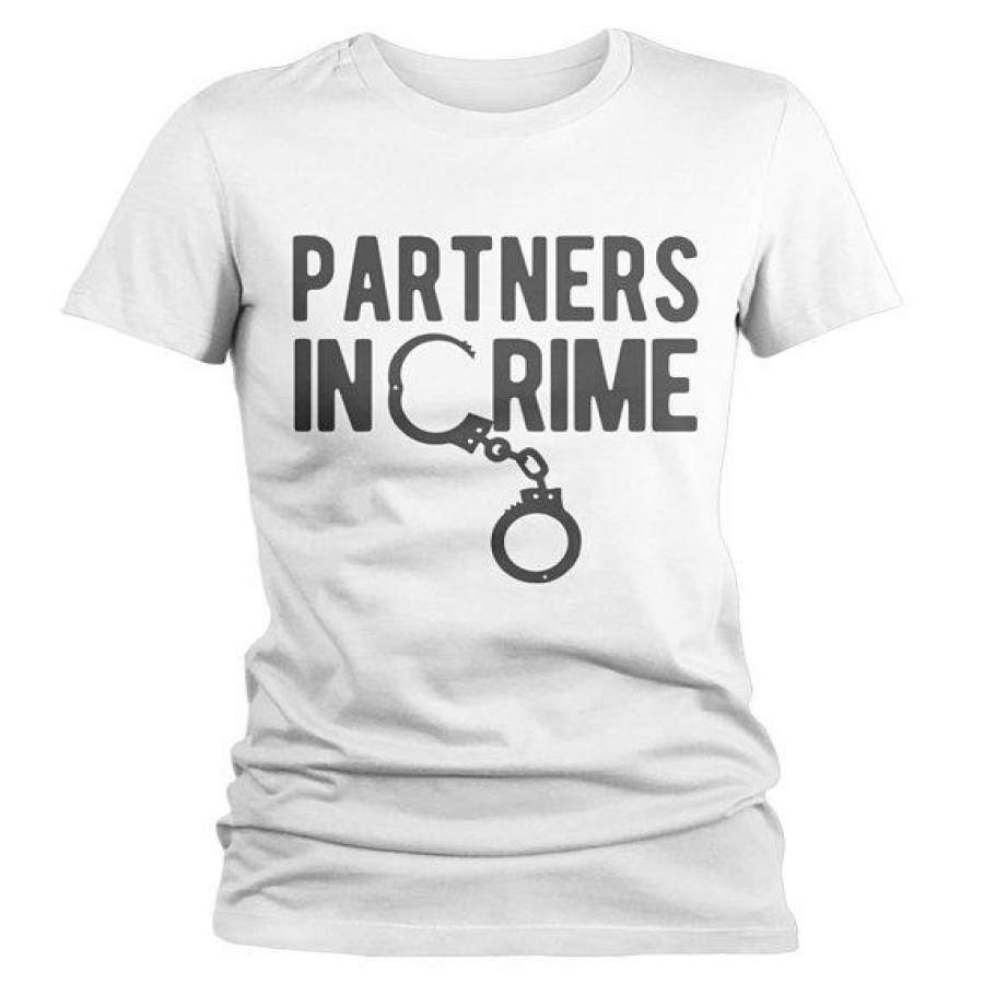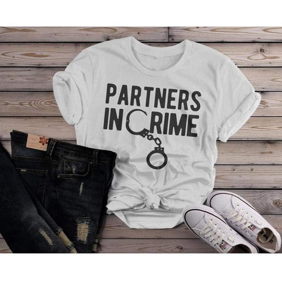 Women’s Partners In Crime T Shirt Best Friends Shirt Matching Shirts Handcuffs Tee Gift Idea