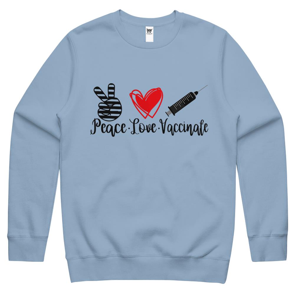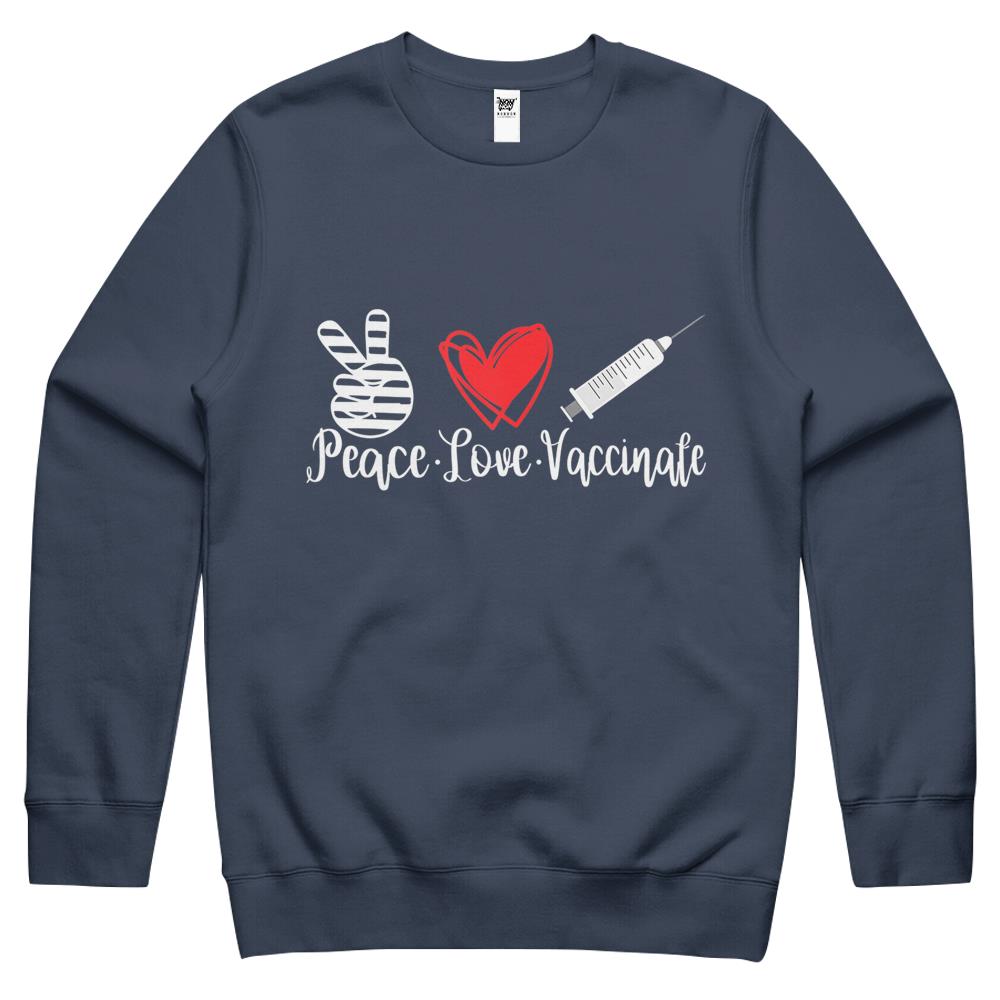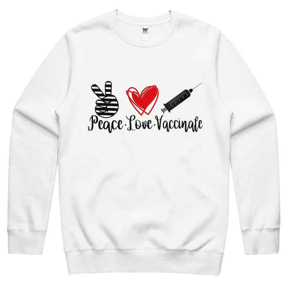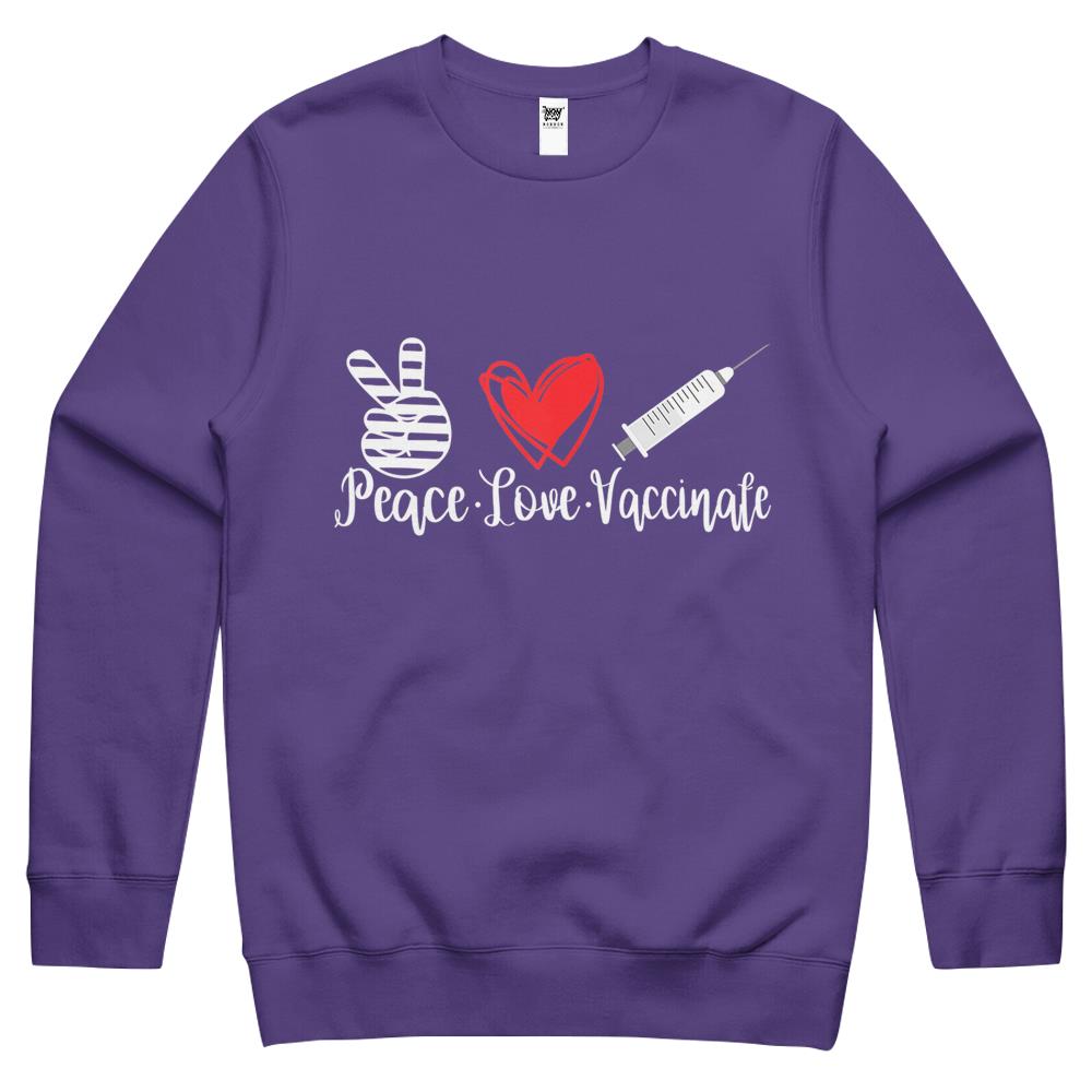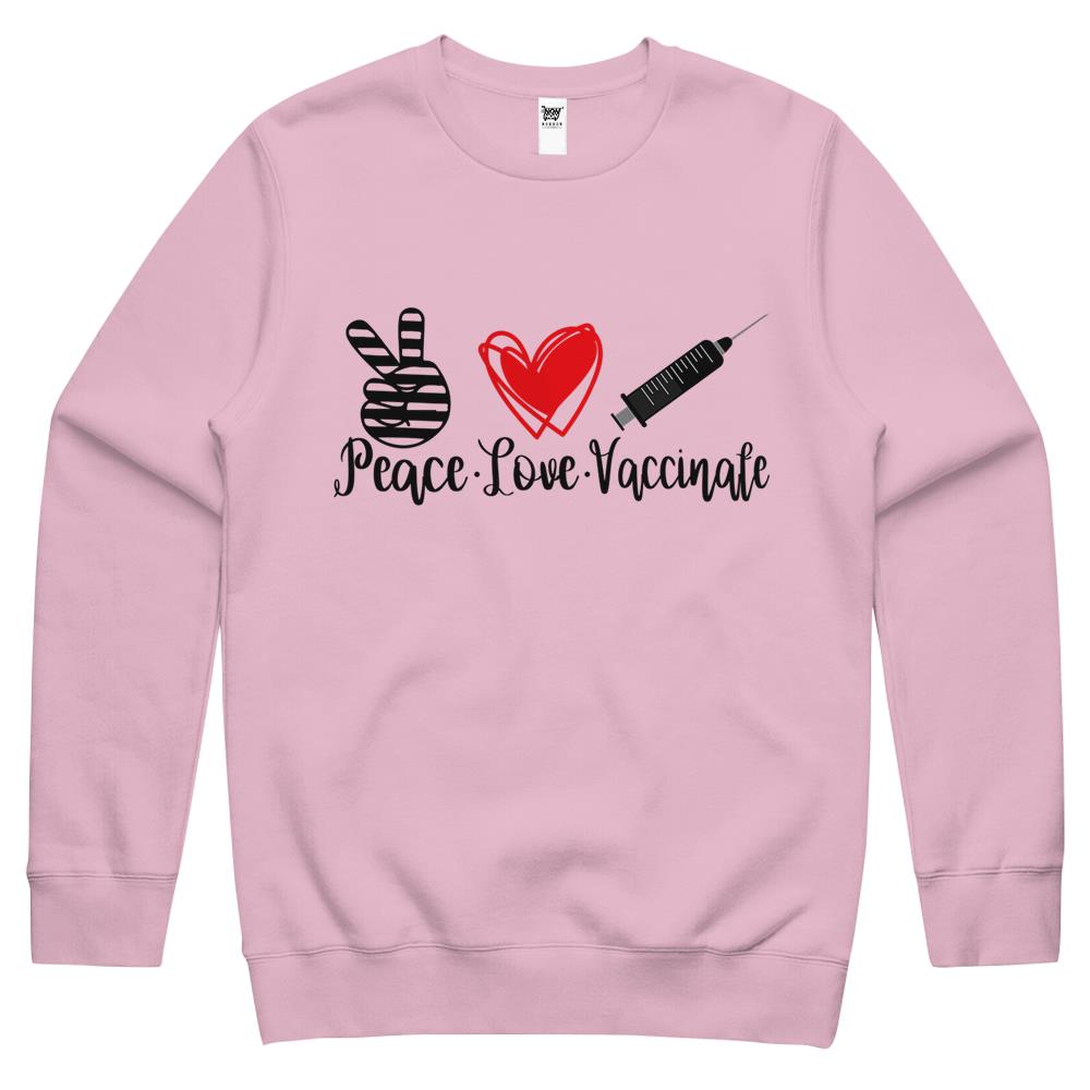 Womens Peace Love Vaccinate 2021 Pro Vaccine Gift Crewneck Sweatshirt