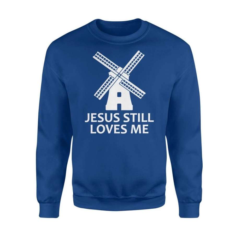 Womens Windmill Jesus Still Loves Me – Standard Fleece Sweatshirt