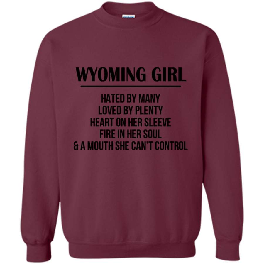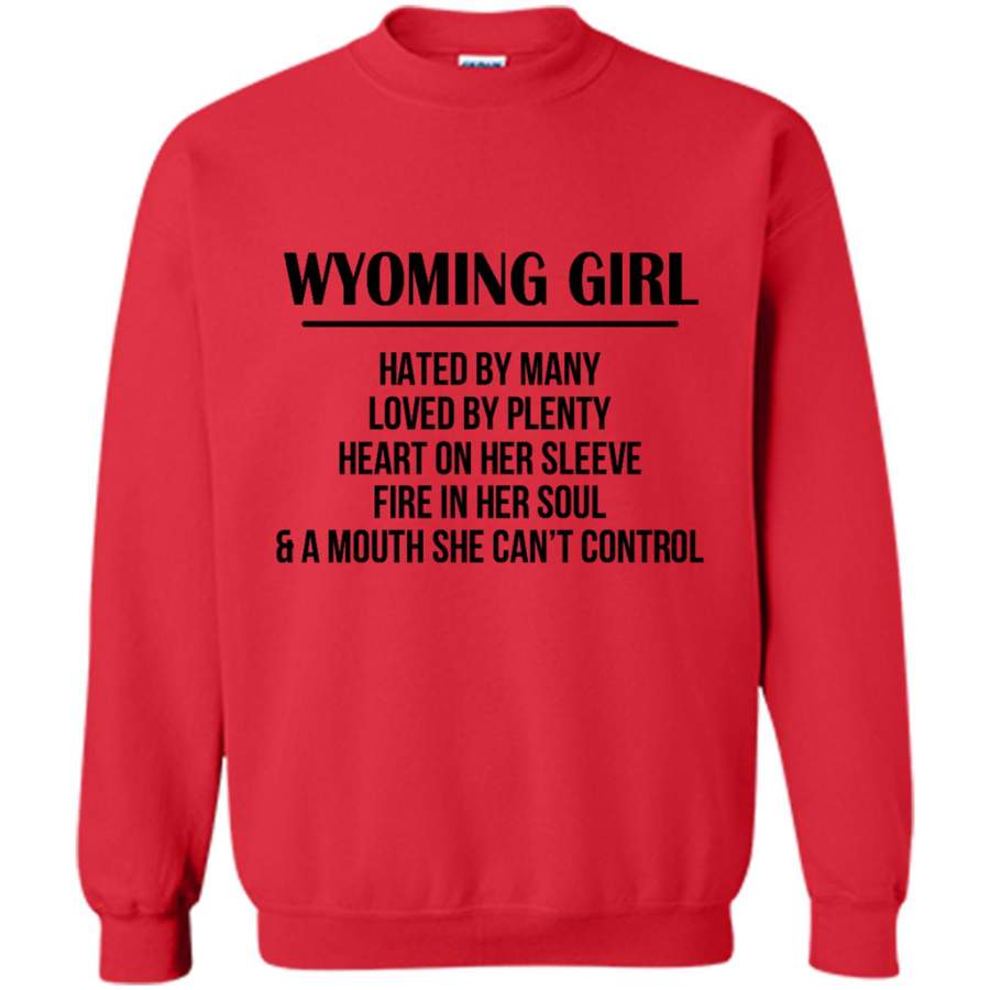Wyoming Girl Hated By Many Loved By Plenty Heart On Her Sleeve Fire In Her Soul A Mouth She Can’t Control – Gildan Crewneck Sweatshirt