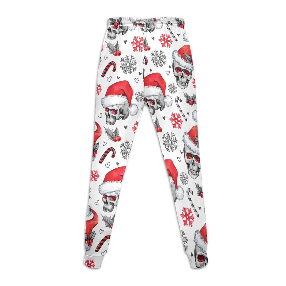 Xmas Couple Skull All Over Print Sweatpants, Christmas Skull Sweatpants