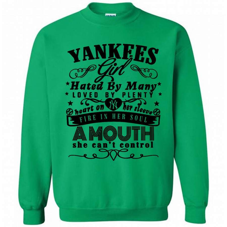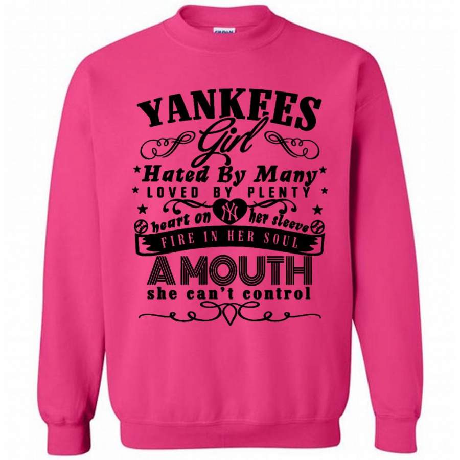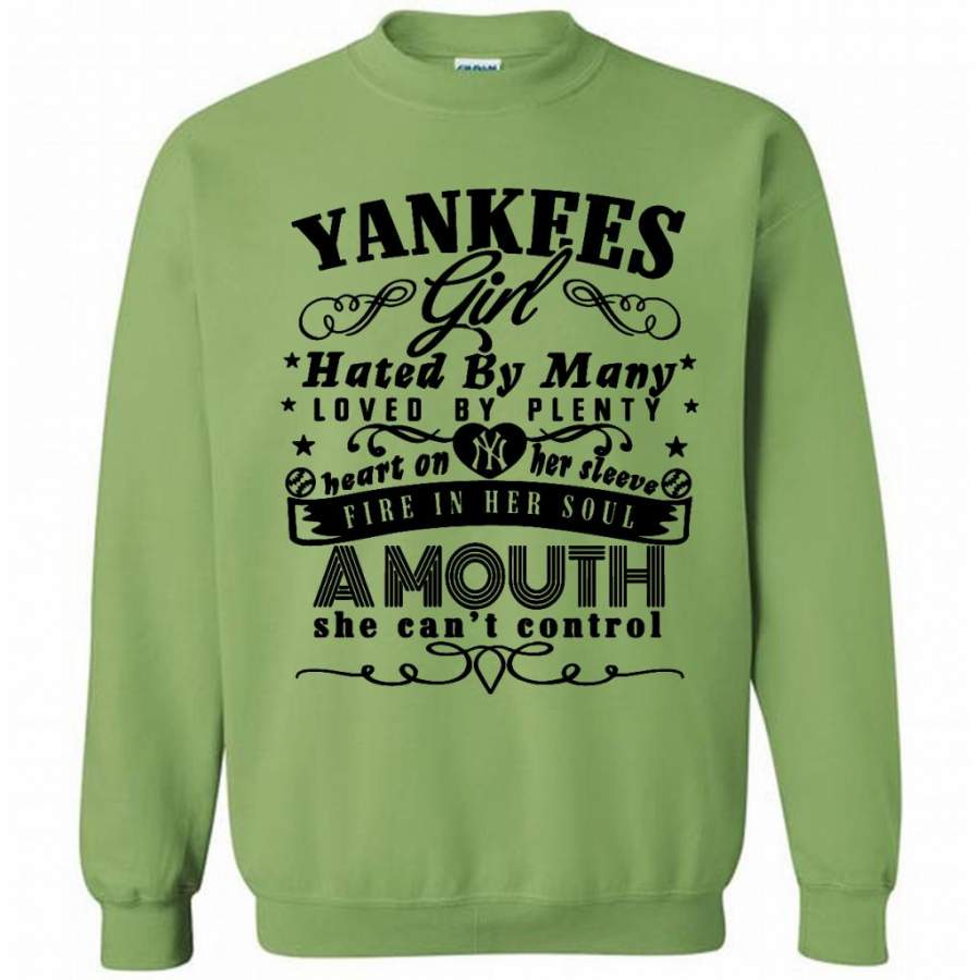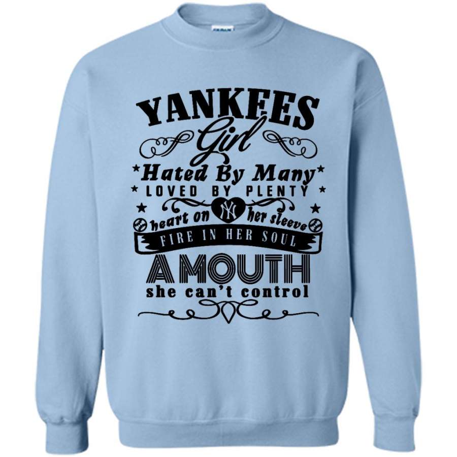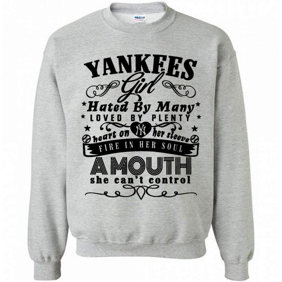 Yankees Girl Hated By Many Loved By Plenty Heart On Her Sleeve Fire In He Soul Amouth She Can’t Control W – Gildan Crewneck Sweatshirt