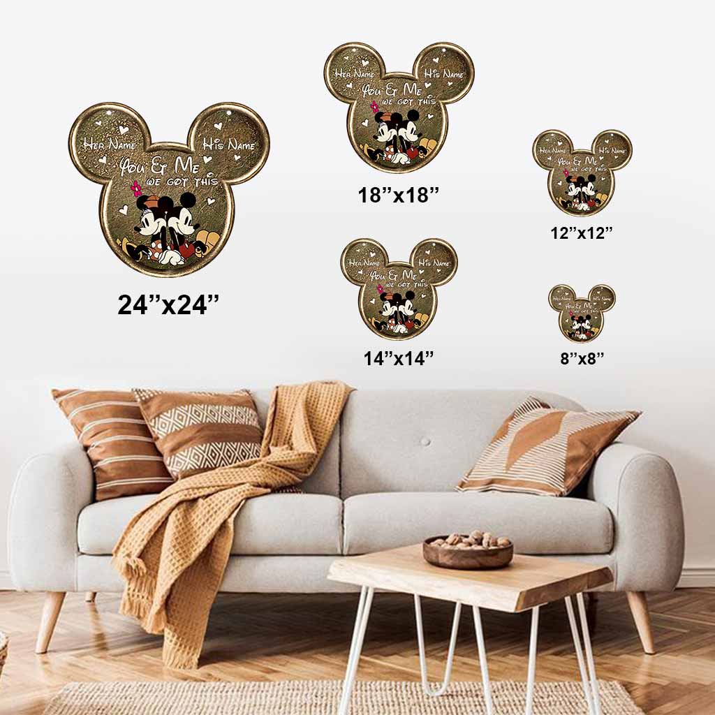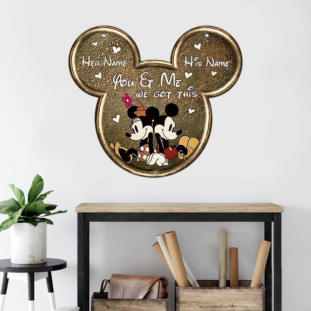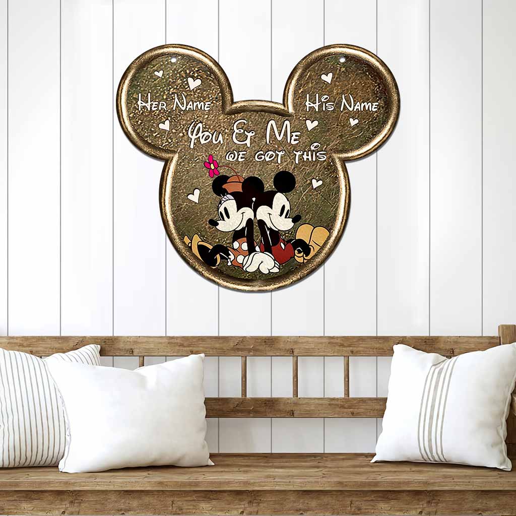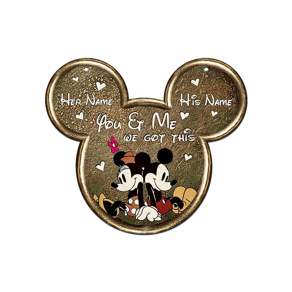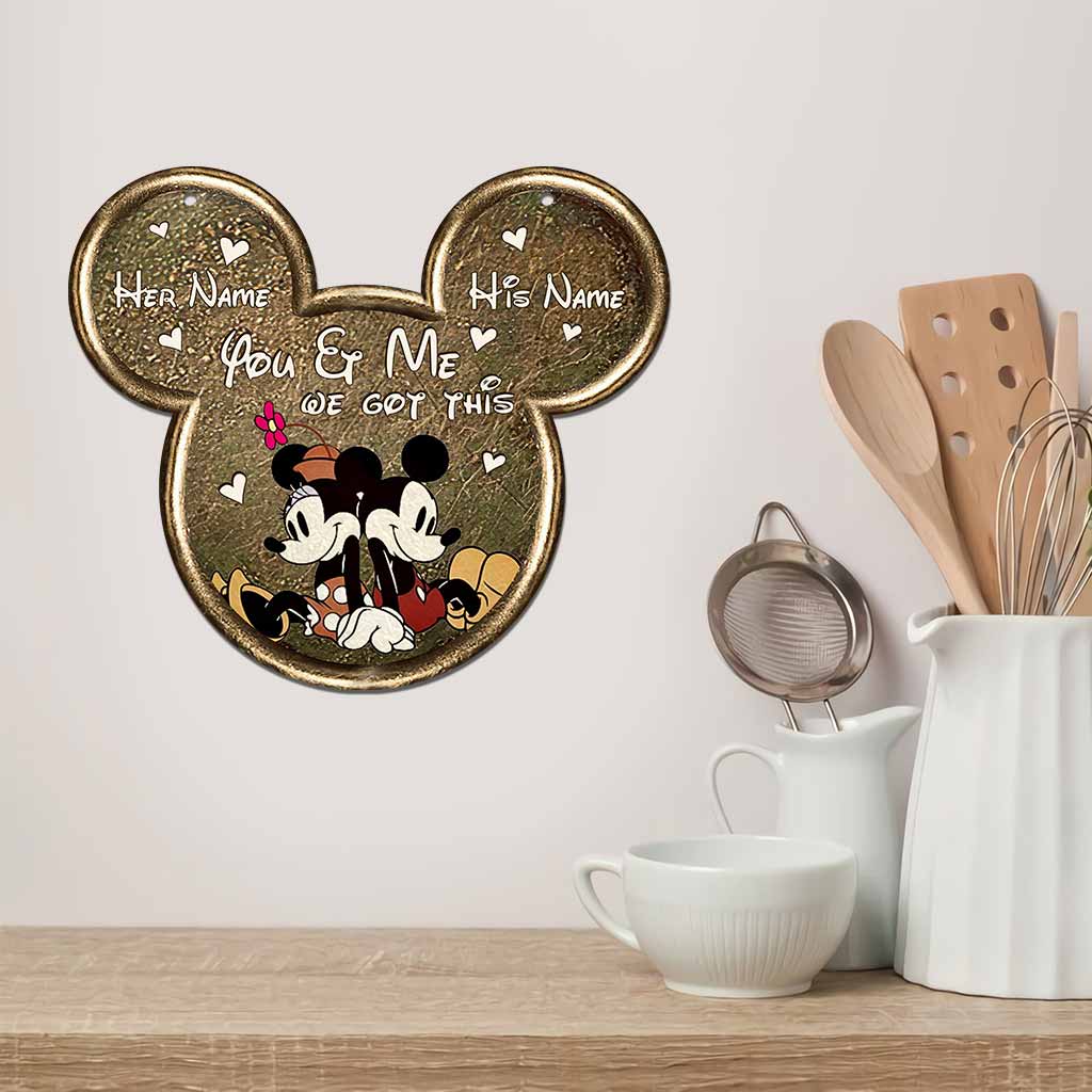 You And Me We Got This Mouse Ears – Personalized Couple Mouse Cut Metal Sign With 3D Pattern Print