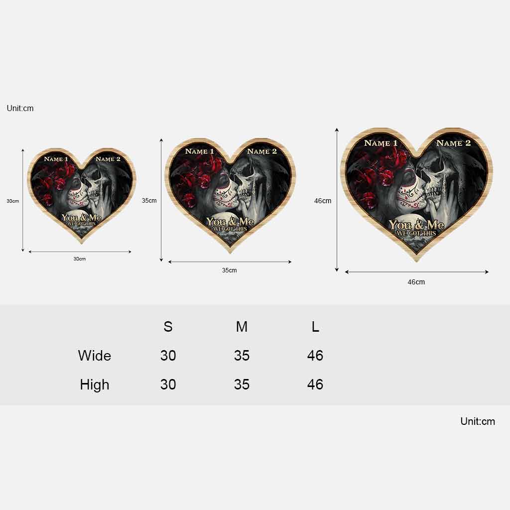 So whether you're looking to show off your own name or create a personalized gift for someone special, LateAndLow Store has got you covered. Start designing your own custom You And Me We Got This – Personalized Couple Skull Wood Sign With 3D Pattern Print print-on-demand product today, and let us bring your vision to life!
