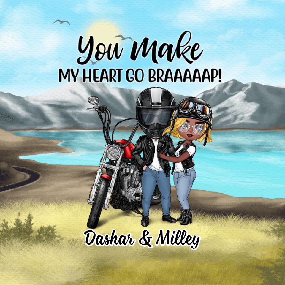 You Make My Heart Go Brappp – Personalized Pillow For Couples, Motorcycle Lovers