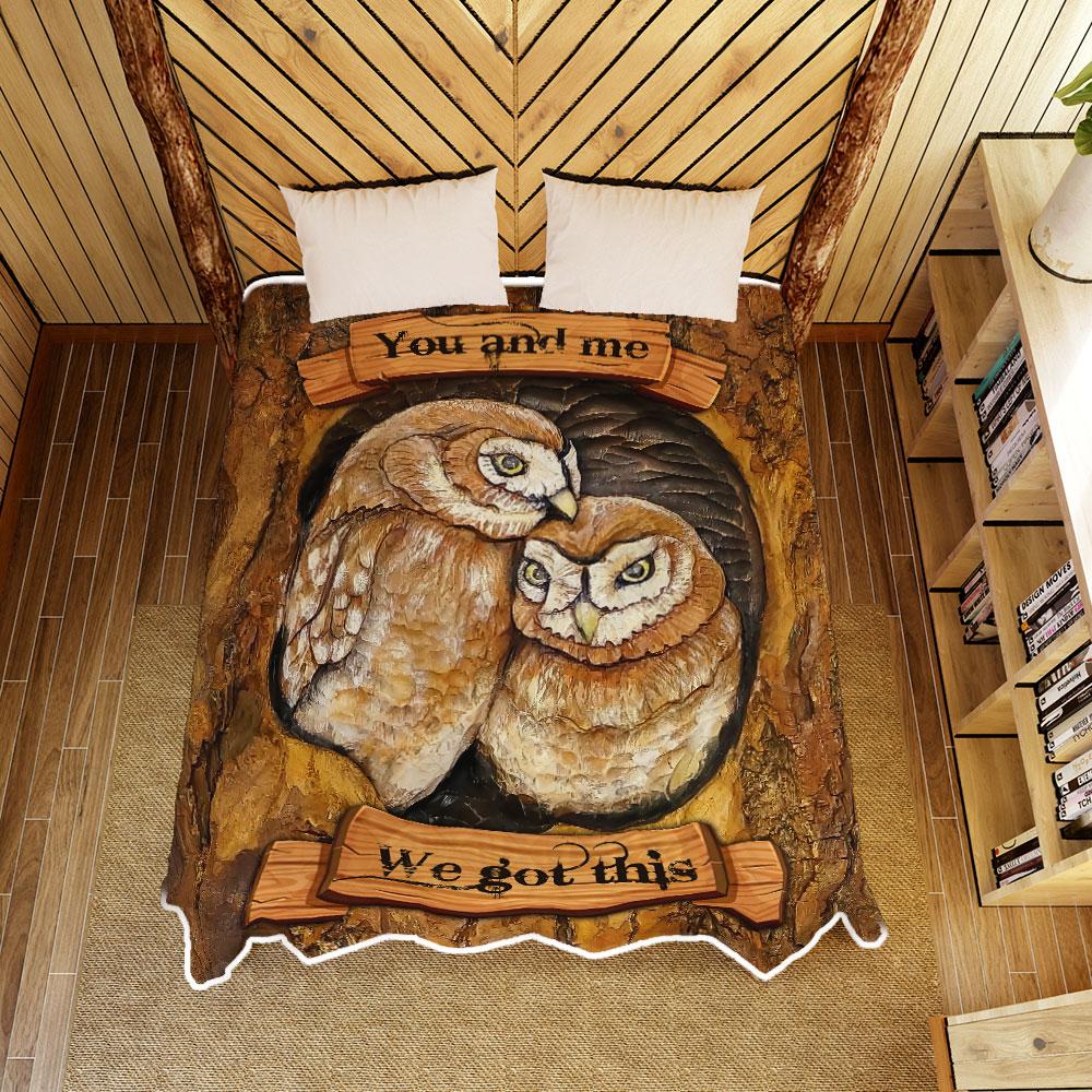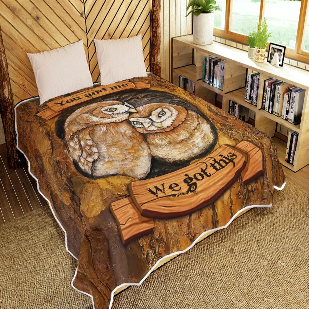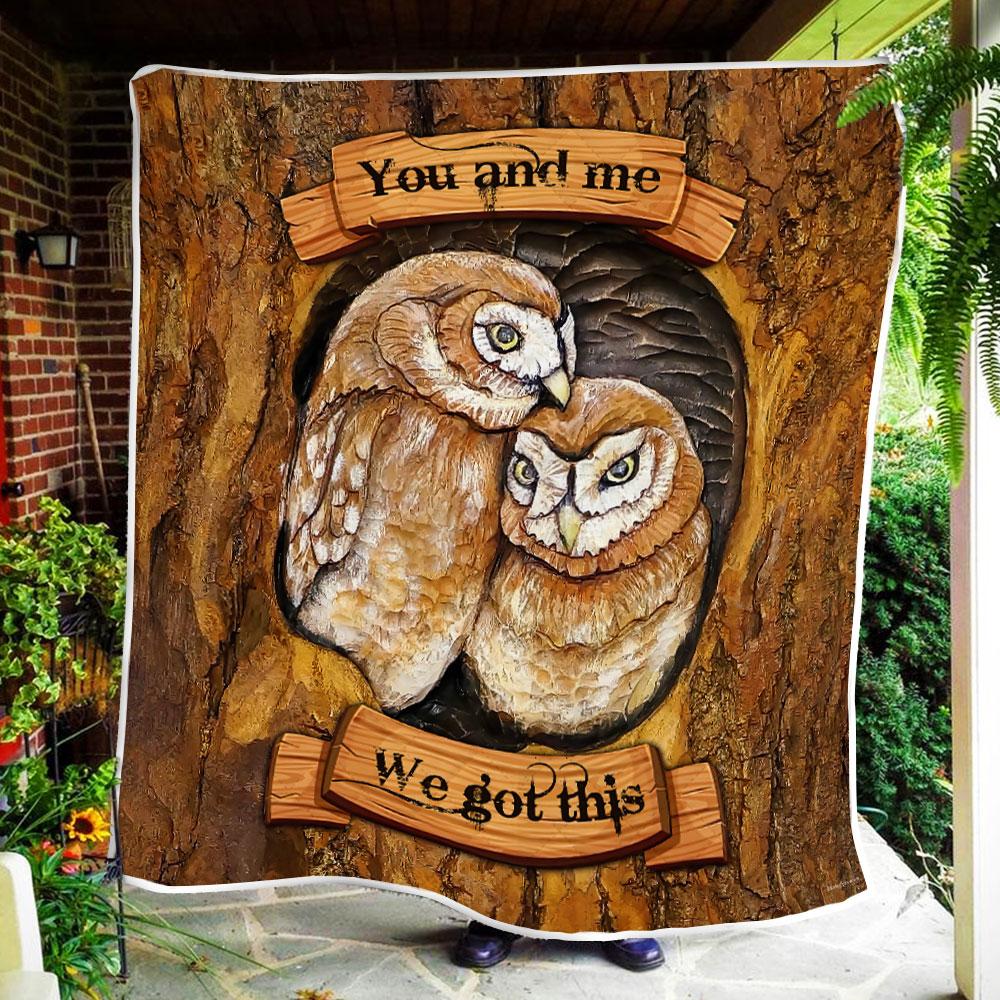 The You & Me We Got This Owl Couple Quilt Blanket is unique design using high quality thread; all stitches are even, tight and dense which makes it durable.